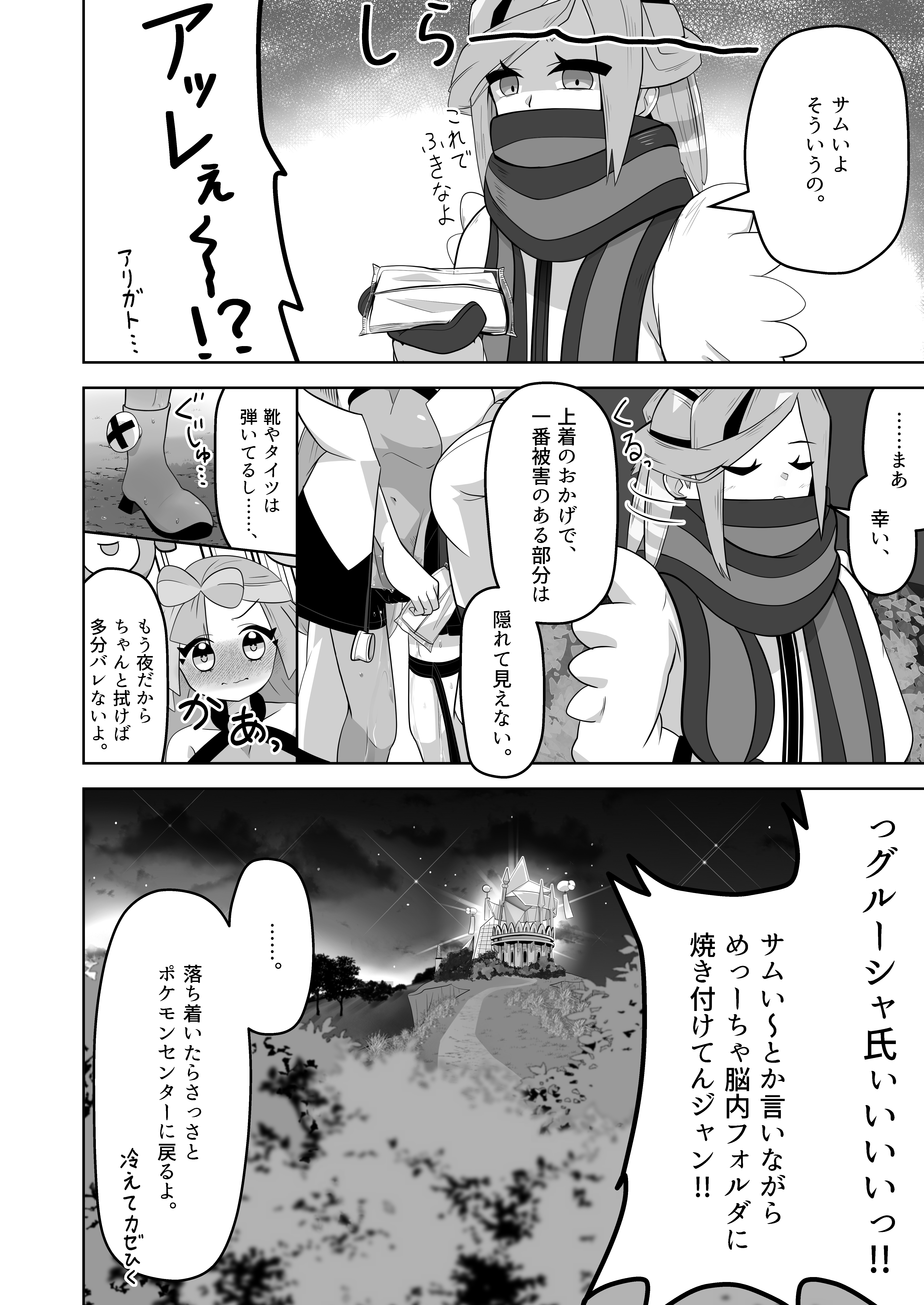 グル×ジャ漏 inパシオ!!May 25th, 2024 23:15・All users初めて漫画を書きました。 ナンジャモがおもらしするやつです。 ※人工島パシオ:ポケモンマスターズEXの舞台 2人のパシオ上陸の決まった年末からずっと作成しており、そして遂に出せるに至りました。 人生初漫画と人生初小説、ナンジャ漏。