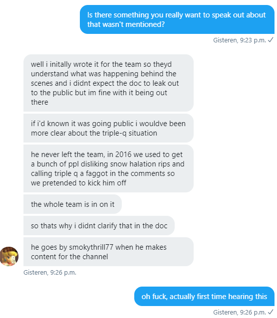 Therefore the team had a plan to pretend Triple-Q left siIvagunner and let him come back as an alias: Smokythrill77 to avoid harassment, making them willing to lie to their fanbase to uphold the safe space.