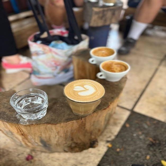 市場を巡って疲れたら、コーヒースタンドでひと休み。人気店らしく、賑わっています。