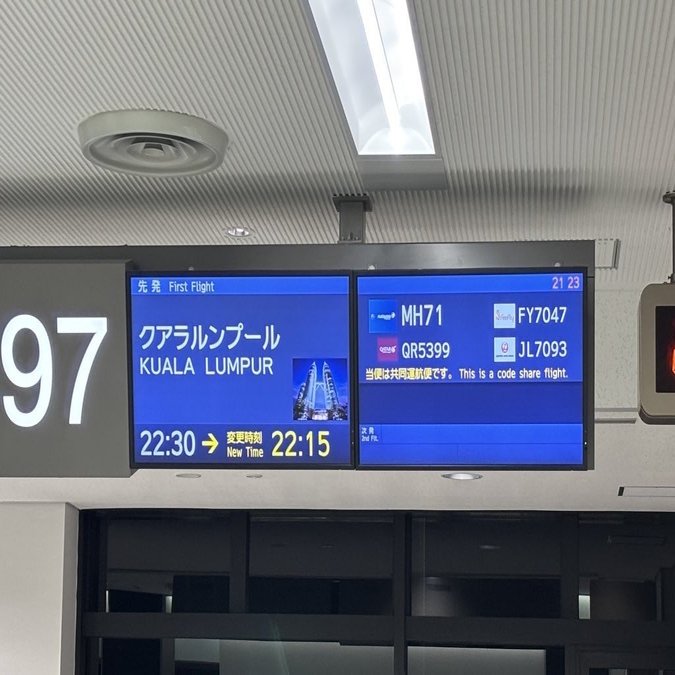 前日にオンラインチェックインした時には22:30発だったのに。思わずメールを確認するも、特に航空会社からは何の連絡も来ていません。ウケる。やめとくれ。