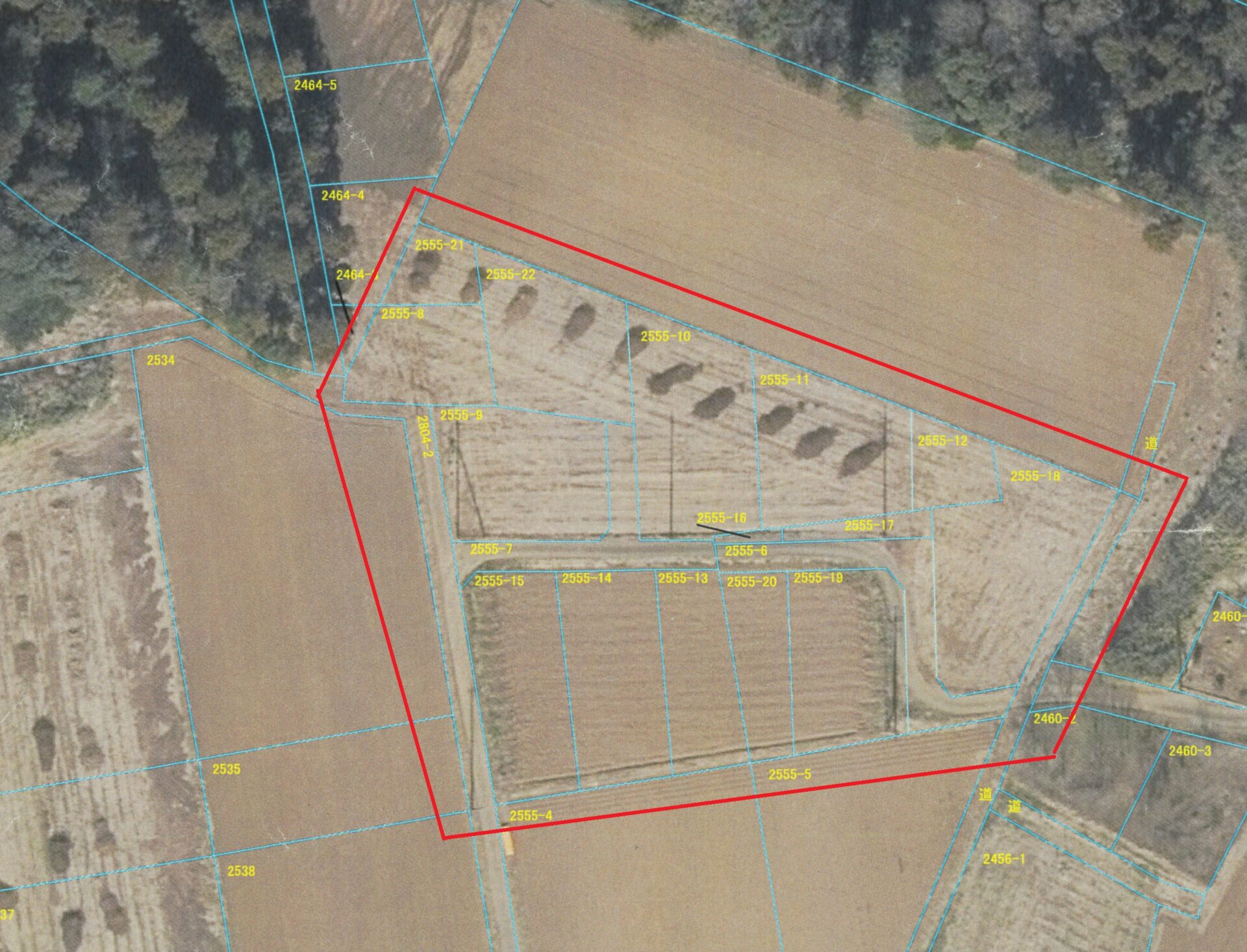 そしてもう一つ謎だったのが、多古町北中字淀台にある分譲地である。地目が「畑」になっているこの分譲地は、登記を見る限りでは間違いなく昭和48年に5条許可を受けて東京都内の複数の人物に分譲されているにも関わらず、肝心の現地は今も耕地として何者かに耕作されたままで、過去の航空写真を見ても、分譲当時から現在に至るまでずっと耕地として利用されている。