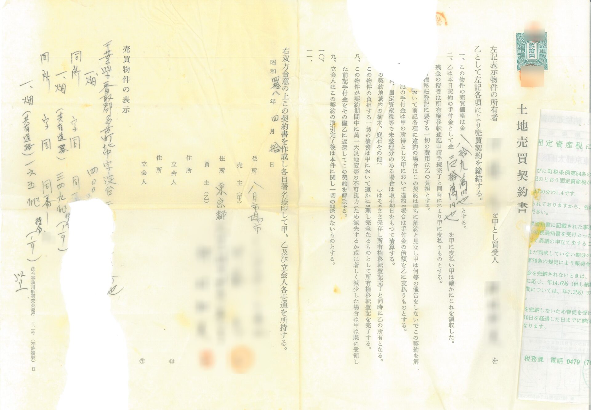 お預かりした資料は、販売当時の契約書や図面のほか、分譲地で執り行われた埋蔵文化財の発掘調査についての報告書や、同時に販売されていたすぐ近隣の別の分譲地(こちらは山林であり農地ではない)の造成工事の報告書などであるが、そのうちのいくつかは古い青焼きコピーで、現在は判読が難しくなっているものもある。すでに分譲から半世紀が経過しているためにA氏の記憶もあいまいで、この分譲地を俺に紹介した仲間は、もうみんな死んでしまった、としみじみ語っていたが、登記簿やこれらの資料を見る限り、どうもこの多古町北中の分譲地は、一般に広く販売されたものではなく、当時の日本航空の関係者が業者より土地分譲の情報を受け、社内で購入者を募っていたもののようである(A氏は日本航空の社員ではないが、仲間を通じて購入したとのこと)。