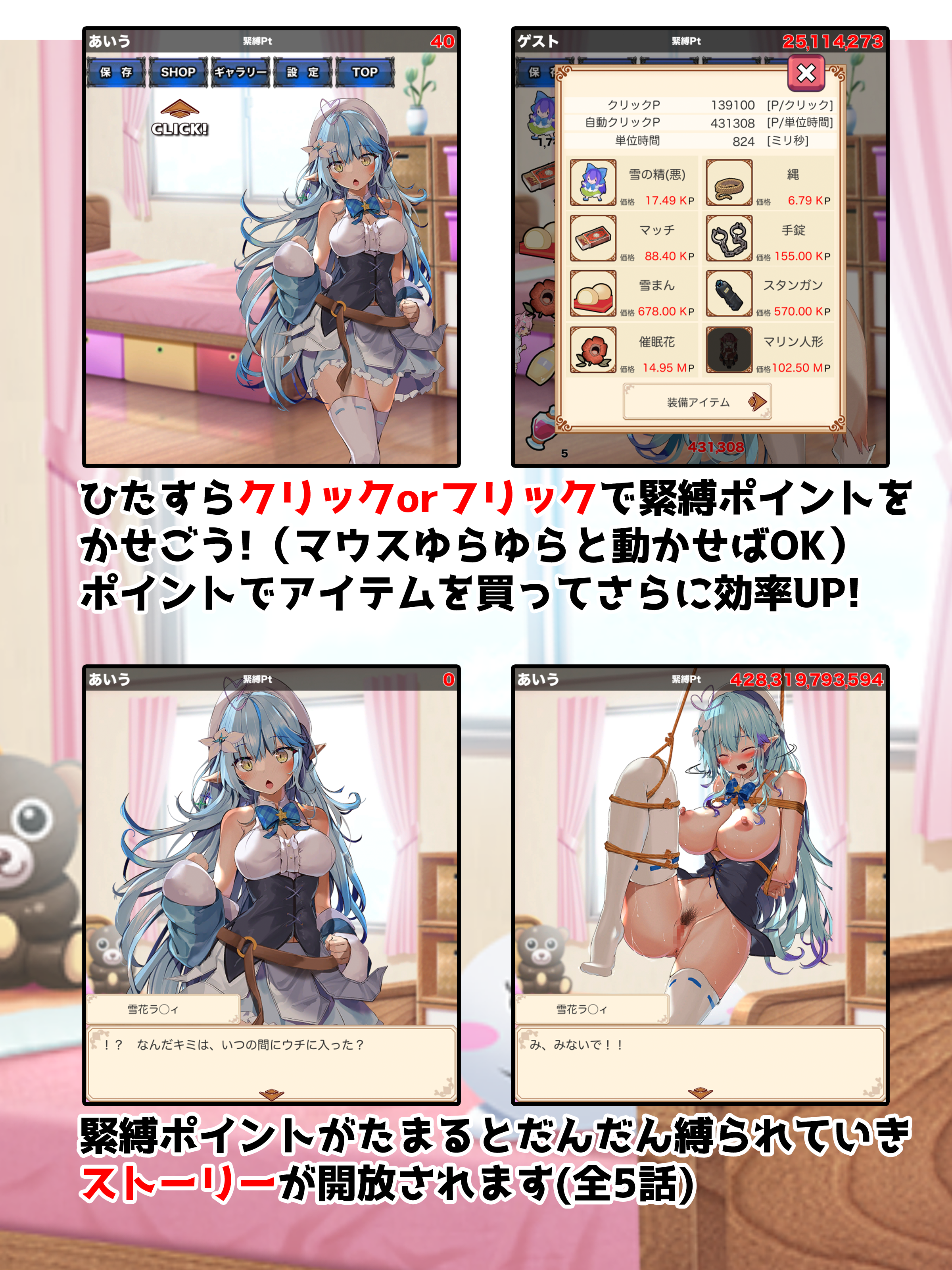 ひたすらラ◯ィをクリックORフリック(マウスゆらゆら、指でこする)で緊縛ポイントが貯まります