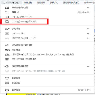 まず、リンク先を開いたら、左上の「ファイル」をクリック。「コピーを作成」を選択します