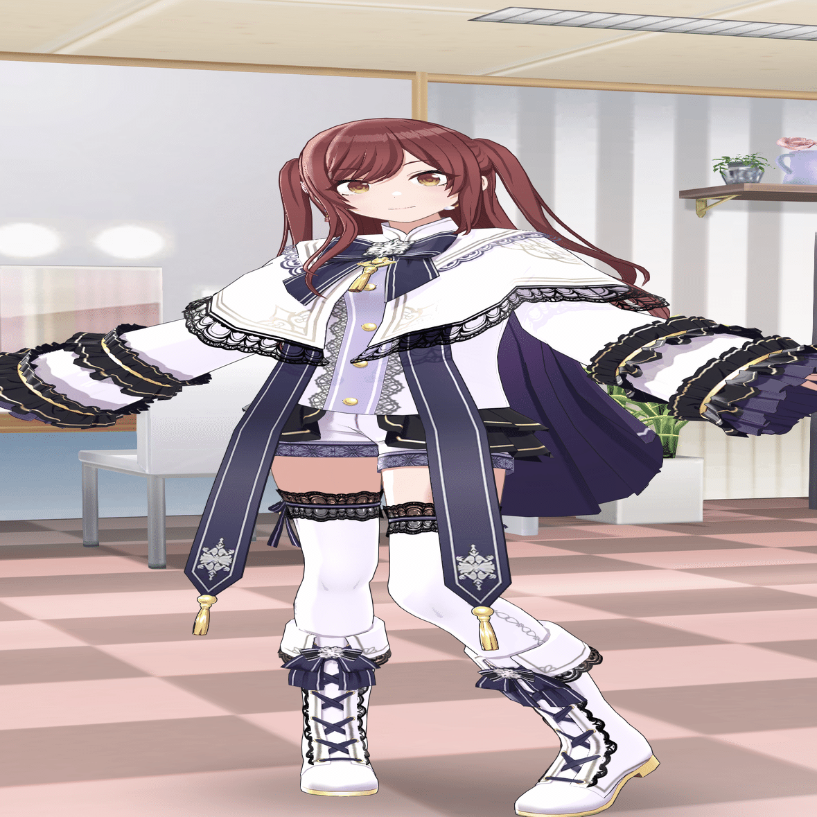 ☆3摩美々の衣装。やっぱ冬だし。コートっぽい衣装でかわいいやつ着せたくて。直近実装されたSNOW FLAKE MEMORIESとかこれで踊ると最高です。