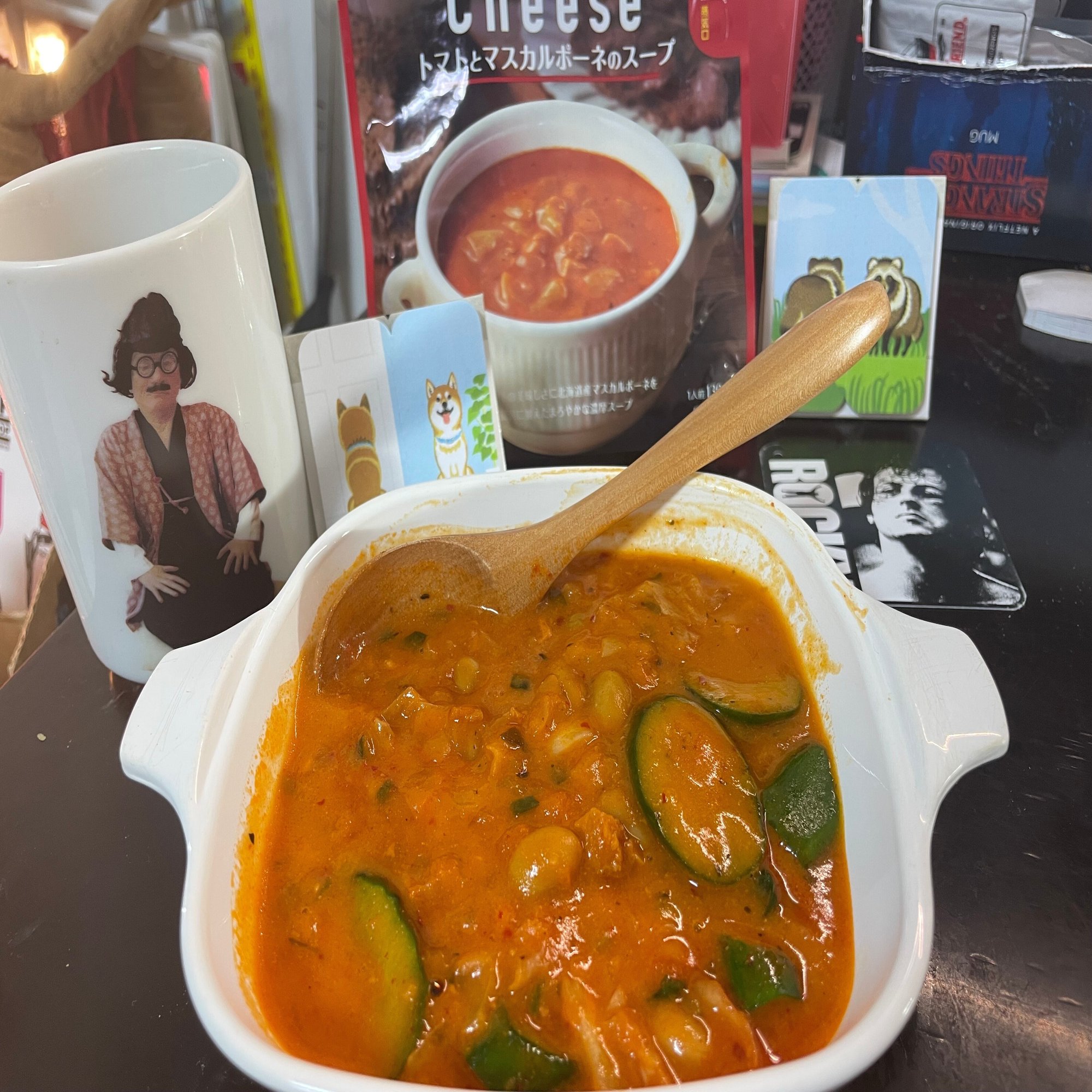 昨日、食べ残したキムチ納豆をスープに混ぜる。