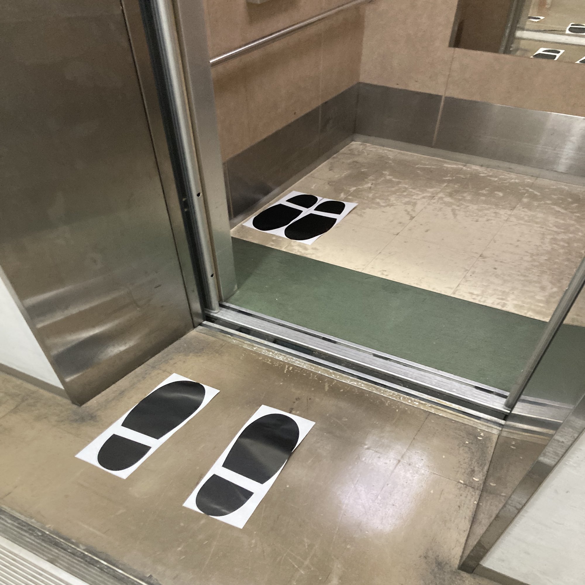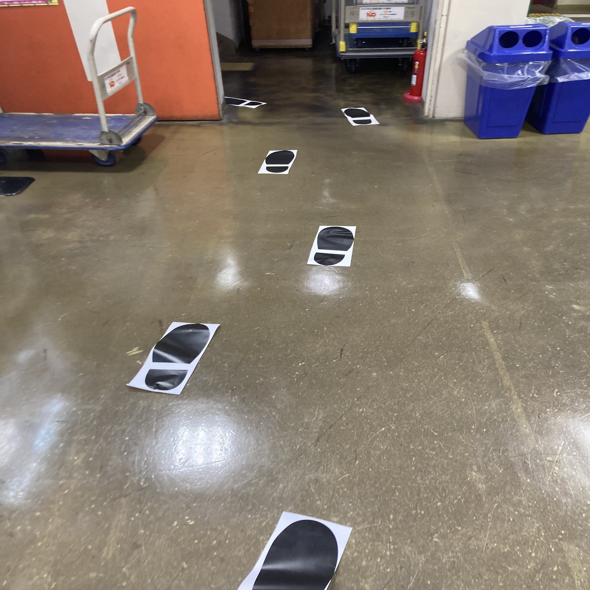 会場入り口から階段へとまっすぐ続いていた、大きな足跡です。