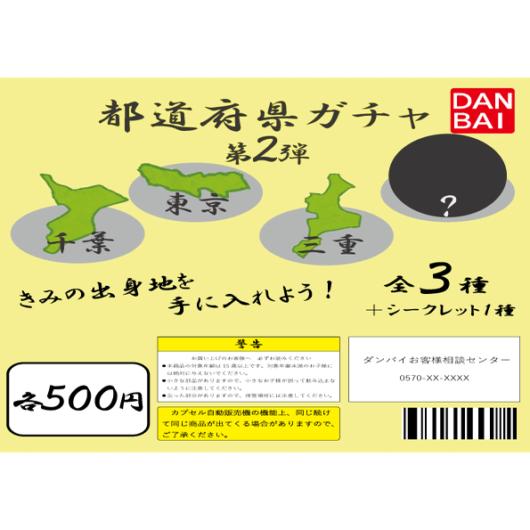 「都道府県ガチャ第2弾」は、千葉・東京・三重・シークレット、というラインナップです。