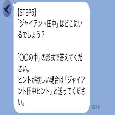 出題によると、「ジャイアント田中」がどこかにいるようです。