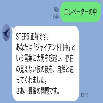 STEP5の回答を送ると、上の様なメッセージが表示されました。