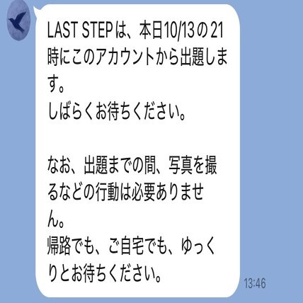 LAST STEPは、本日10/13の21時にこのアカウントから出題します。