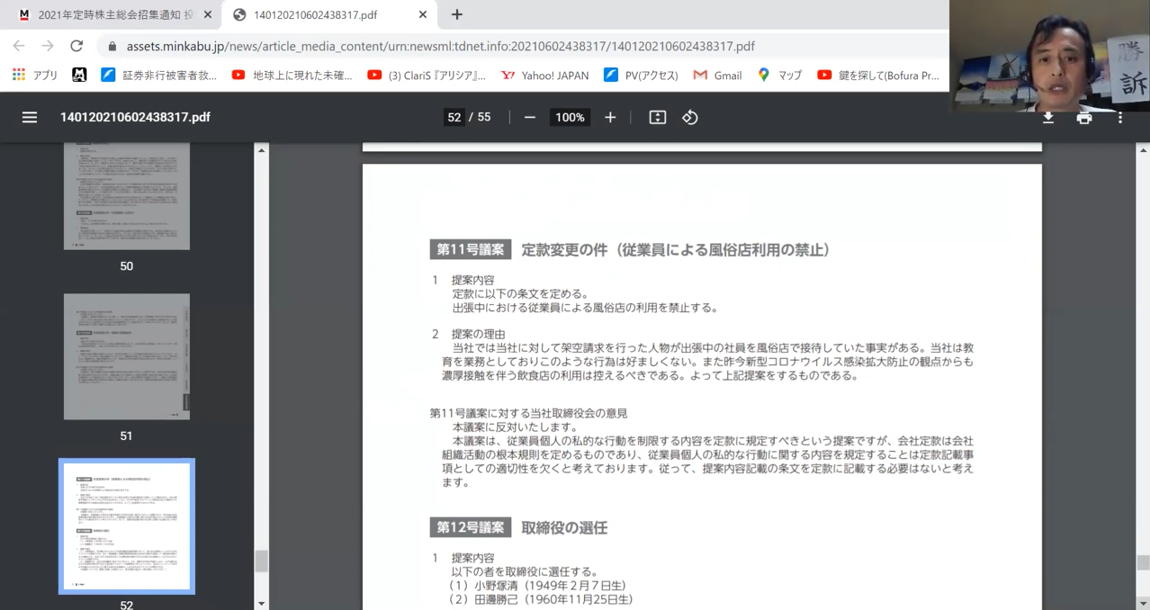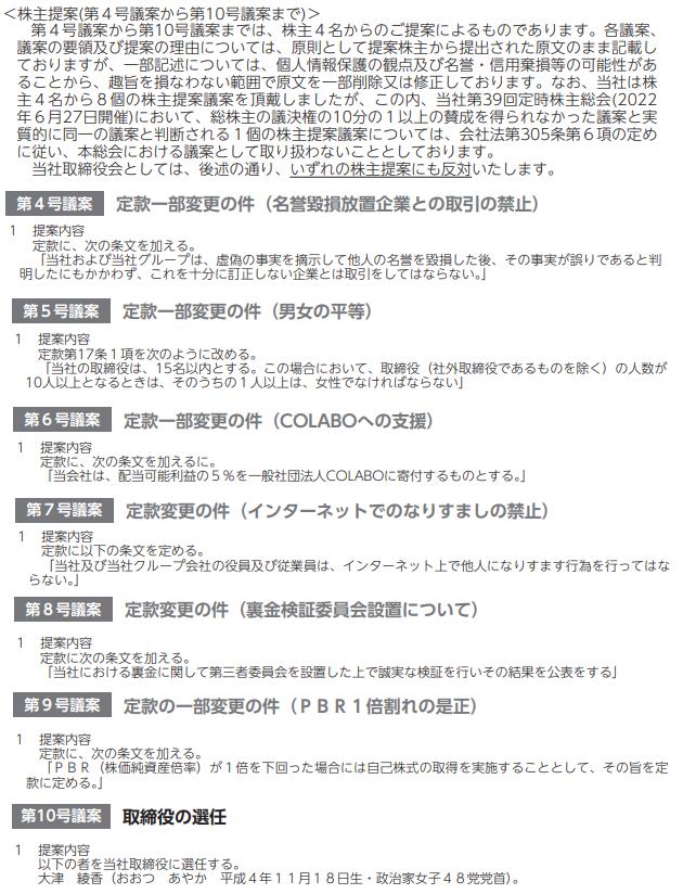 youtubeも見てみたけど、山口さん以外の人が出した株主提案といった反応だったよ。