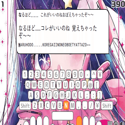 (下のアイちゃんのタイブ練習のセリフ)