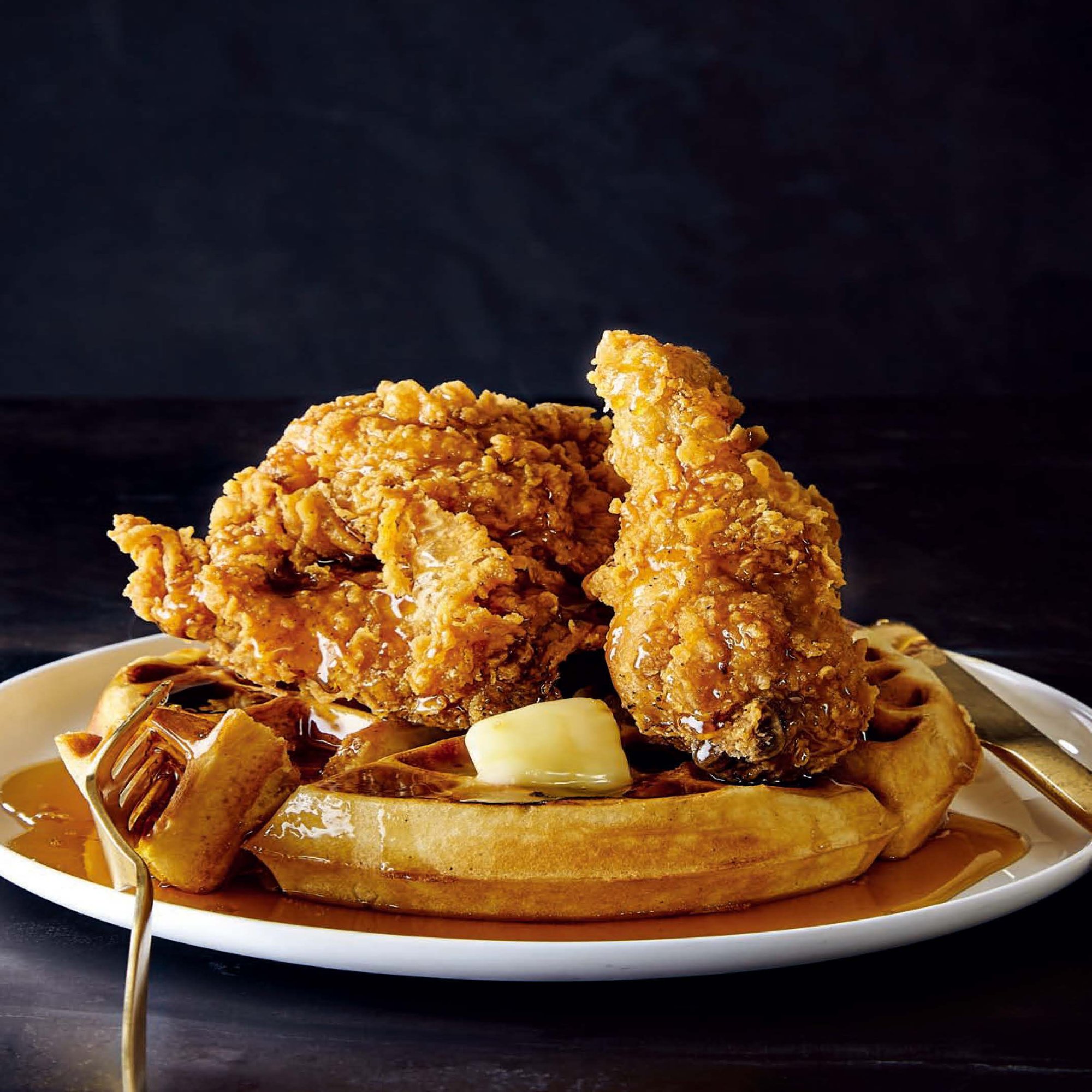 期待したのは、スパイシーな辛い塩味のガリガリチキンの興奮に、甘く囁くようなメープルシロップとワッフルのコントラスト。スパイシーな刺激を甘いワッフルが慰めてくれる。ホッとしたその反動で、再び興奮の坩堝に飛び込んでしまうという地獄と極楽を往復するような体験だ。身体のことは後回し、どうしょうもなく食べたくなるやつだ。しかし全く違ったのだ。