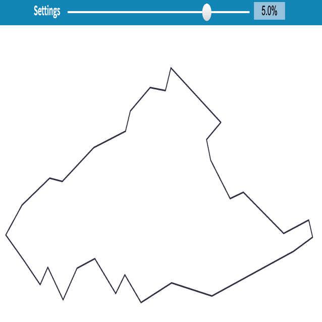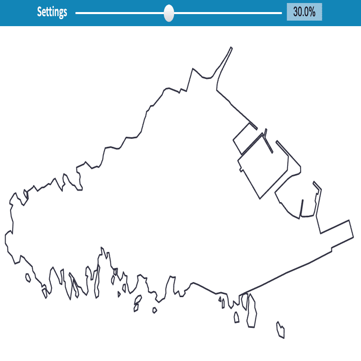 たとえば神奈川県の江ノ島を見ながらSimplifyのスライダーを調整してください。初期状態では複雑な海岸線が精度高く表現されていましたが、スライダーを右に動かすほど海岸線が単純化されていくことがわかります。