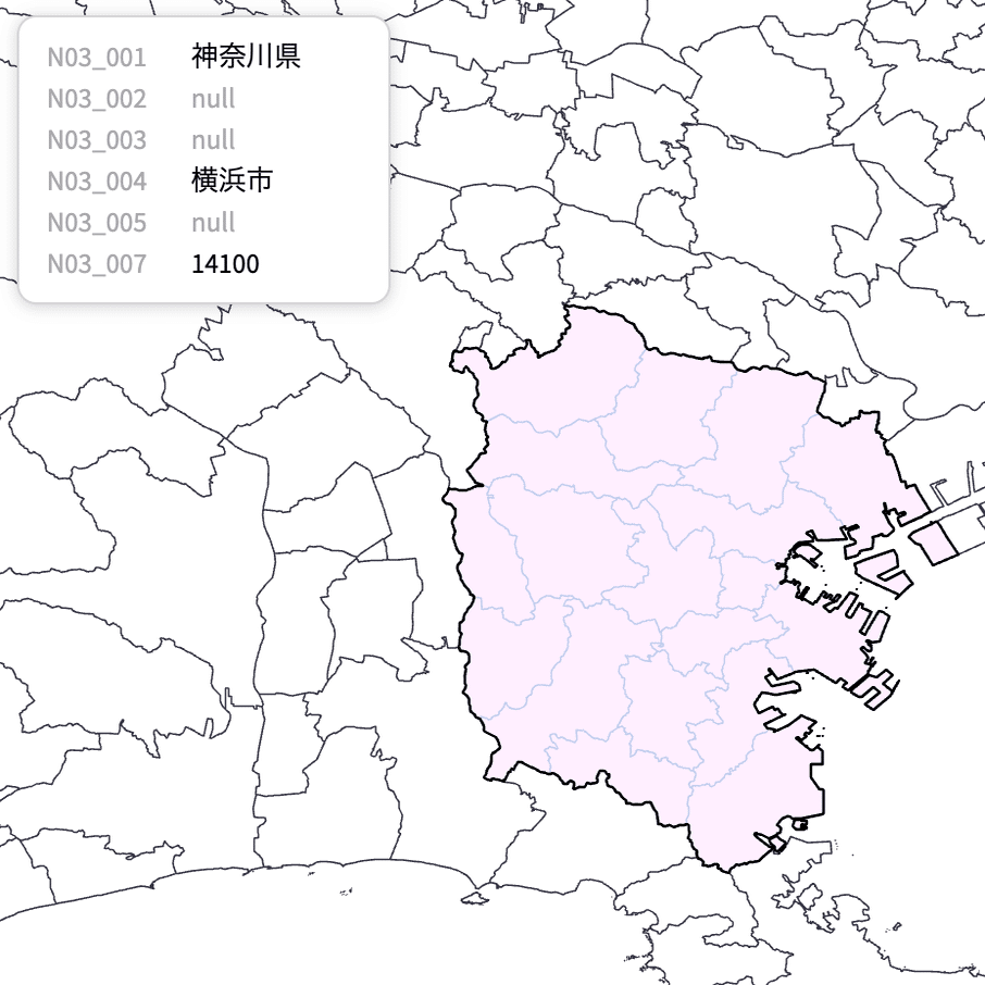 これで横浜市が1つのポリゴンとして扱われるようになりました。