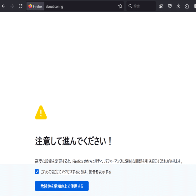 下記の手順をすべて Firefox のアドレスバーに about:config と入力して開いた画面 で行います。
