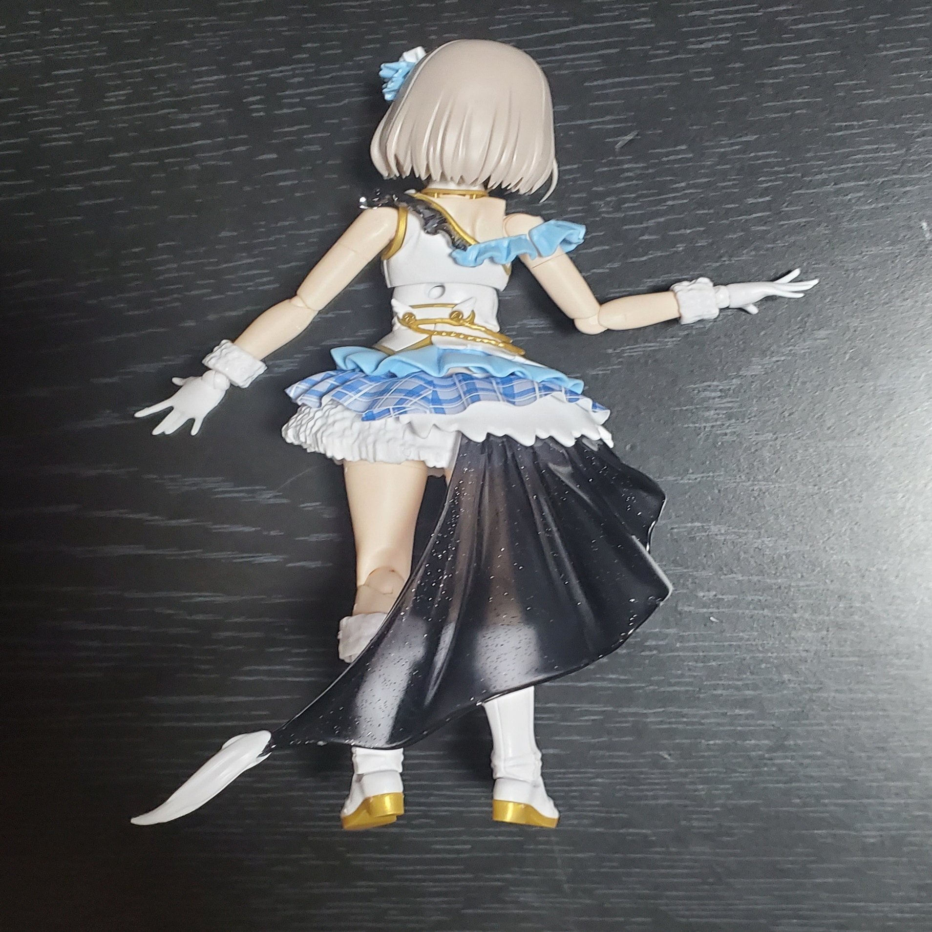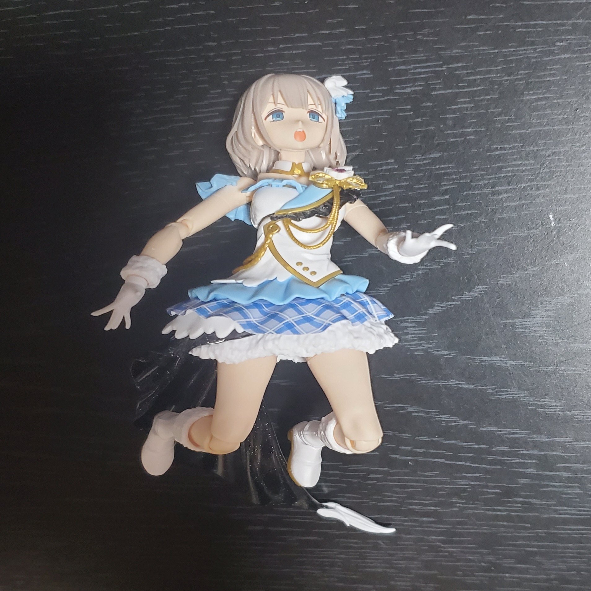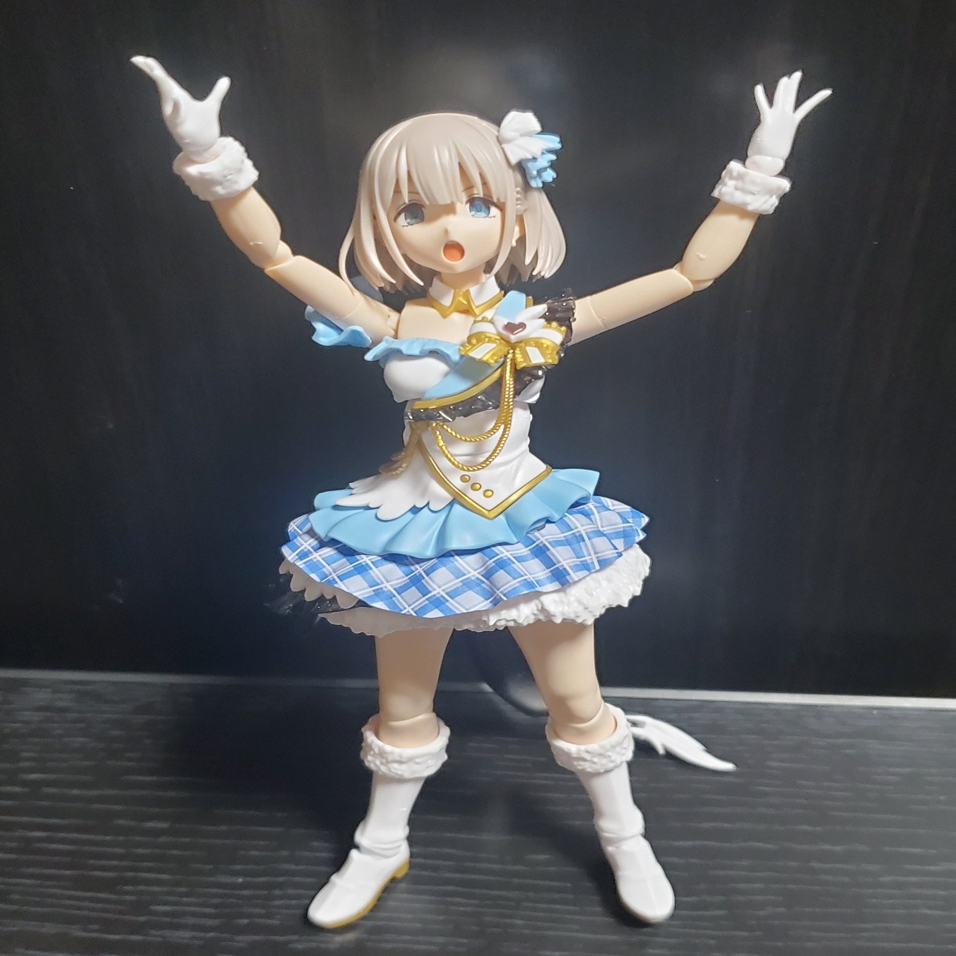 可動域は思っていたよりもそんなに自由ではなかったっす。もうちょっと腕と手をグリグリ自由に動かしたかったっすね。脚も膝を上げたかったっす。椅子に座らせられない仕様なのは個人的に残念っす。ただあくまでアイドルとしての姿だから、そういう椅子に座ったりとかのあんまりアイドルらしくない(見せるべきではない)日常側面として敢えて拡張させなかったのかもしれないっすね。