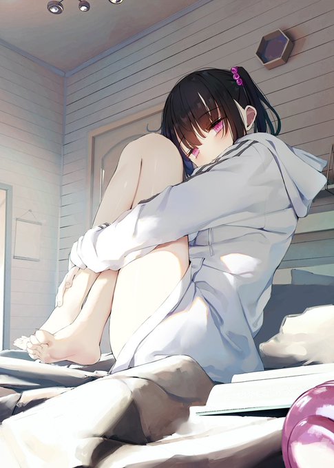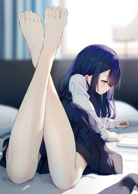 Pixivリクエスト頂きました!寝そべって読書してる女の子の足です。