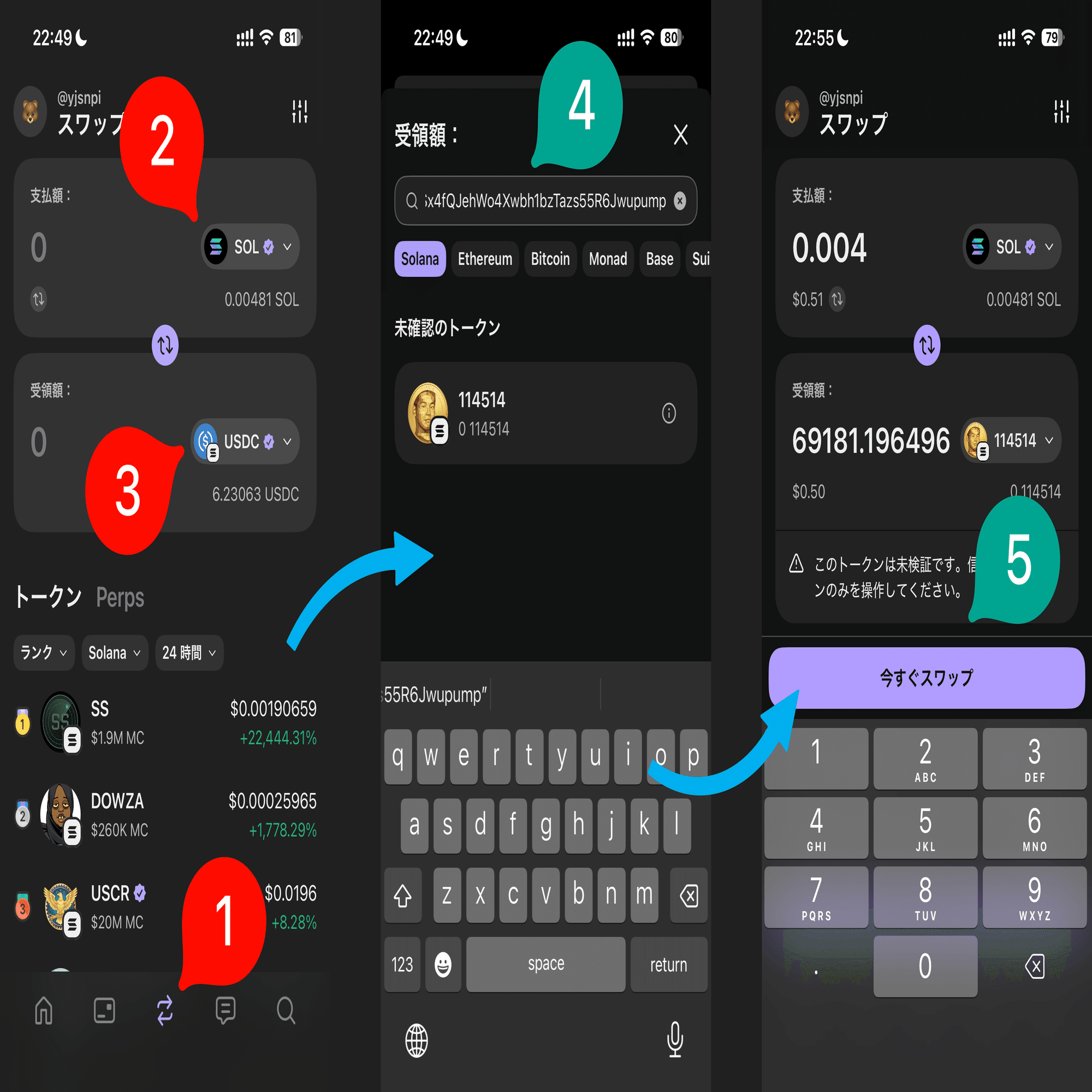 Phantomアプリで SOL ➡︎ 114514 Coinに変換(スワップ)