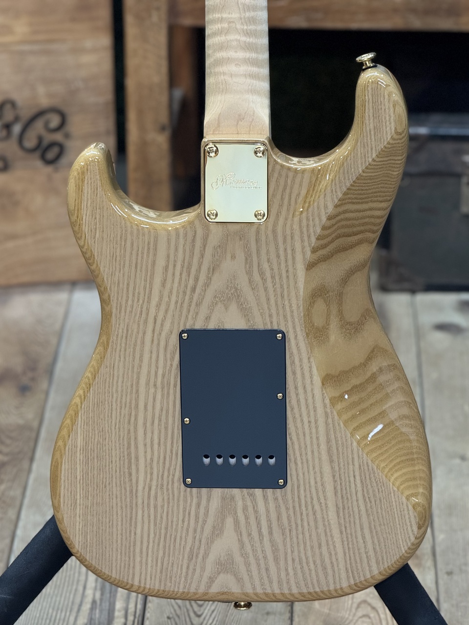 本体カラーとマッチしたアクリルピックガードにより、統一感のあるデザインが生み出されています。
