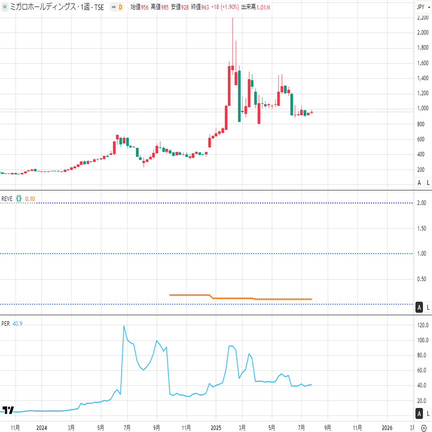 その後に3回も跳ね上がりまして、いまこんな感じです。もうすぐダブル!✌️(2025.8.12現在:1385円 配当5%超えも魅力です)