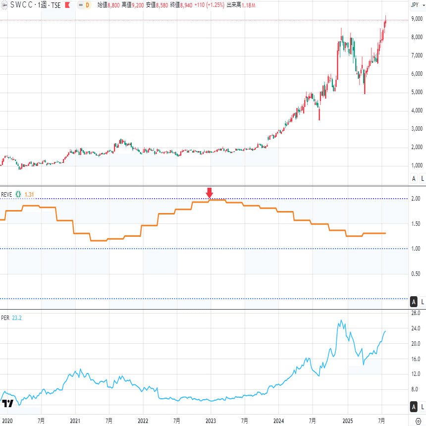 SWCCもREVEスコア上昇後に株価が急騰する典型的なパターンです。文句なしです🥰