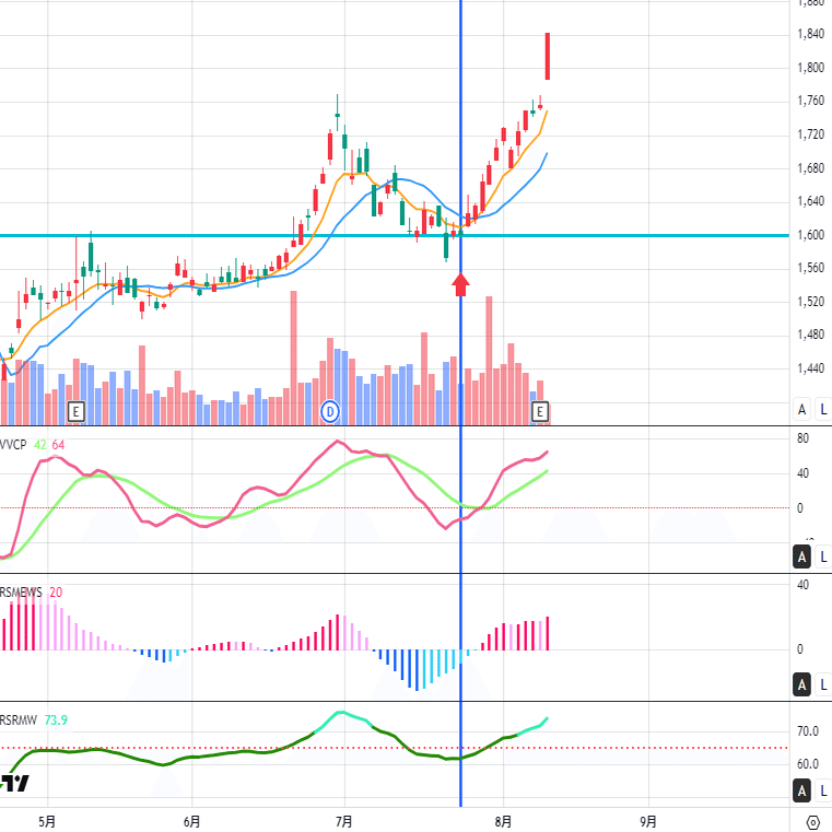 このポストに出したもう一つの銘柄(まだ内緒です)はREVEスコアが基準に達したところで、さらにフジコ的なタイミングがよかったので7月下旬に大人買いして検証しています。