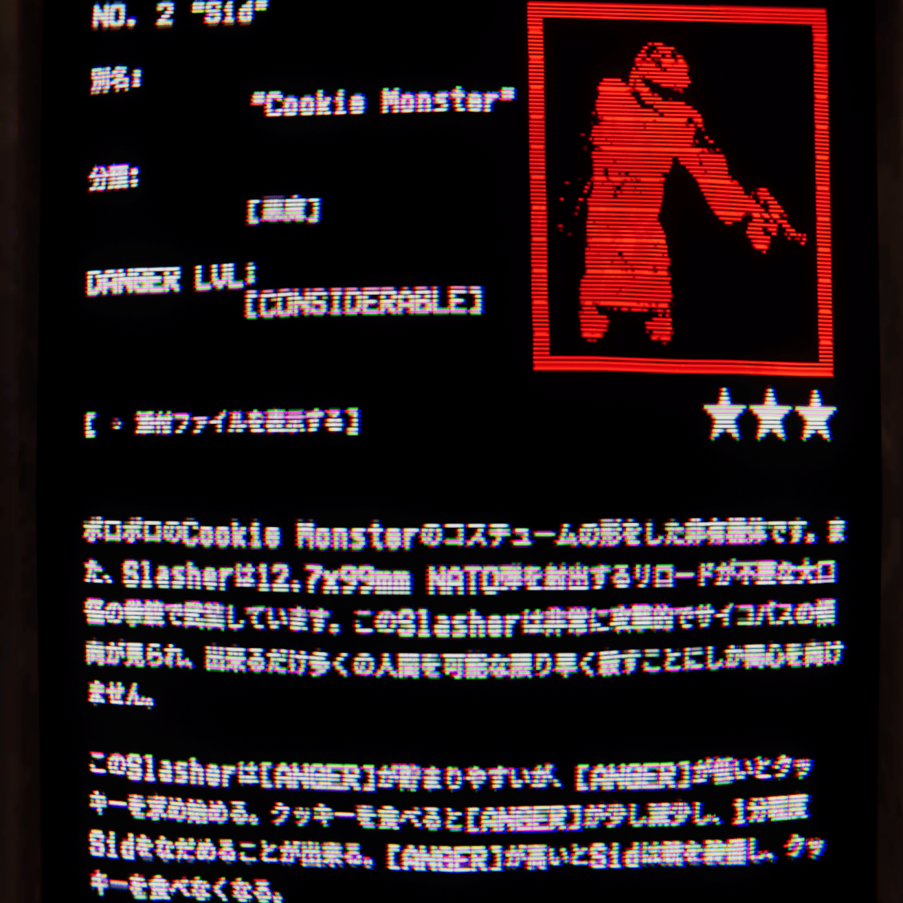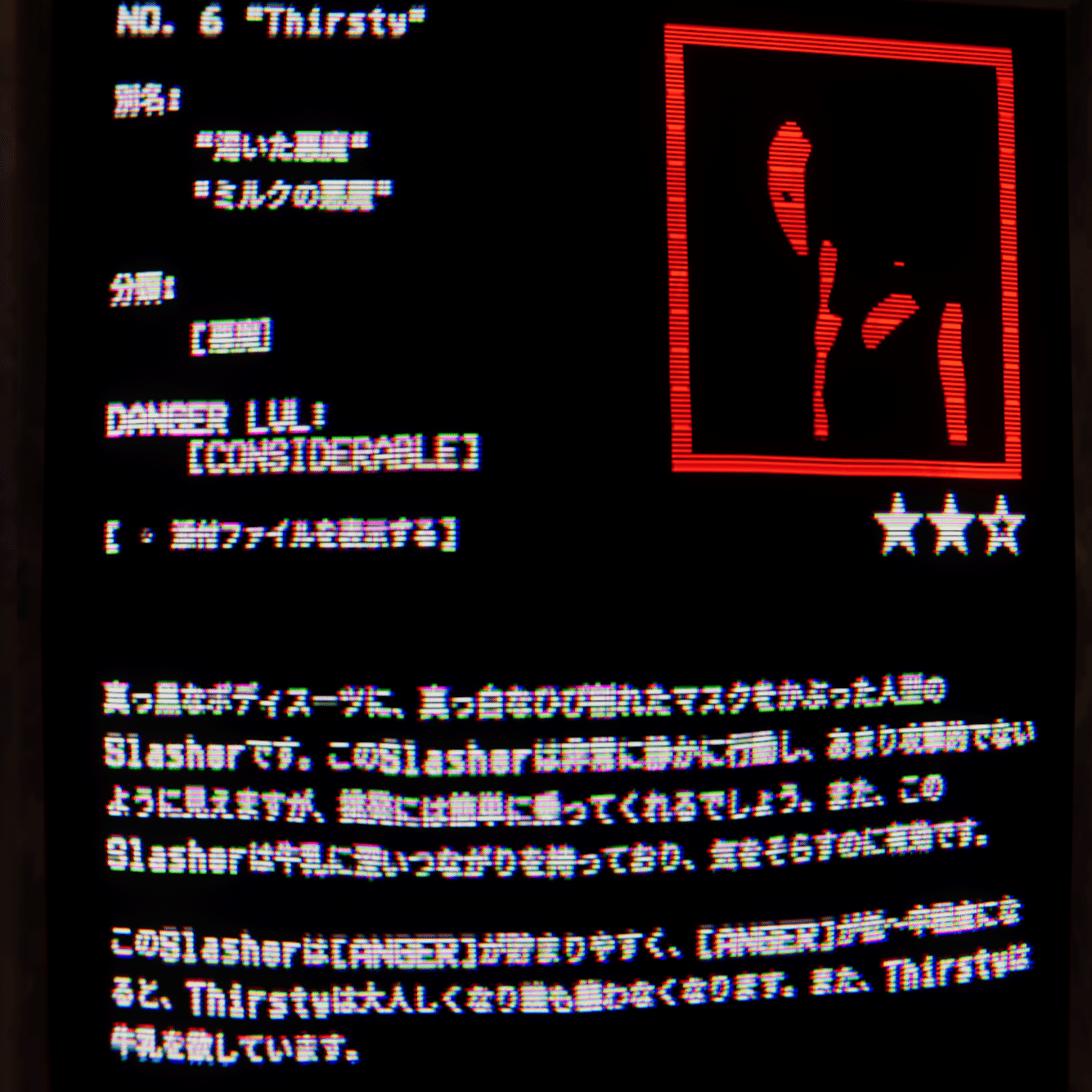 Slasherに見られるとAngerが溜まり、音楽が鳴ると攻撃を仕掛けてくる