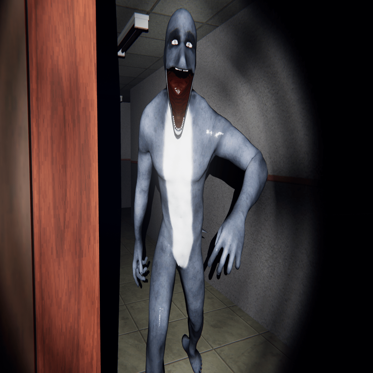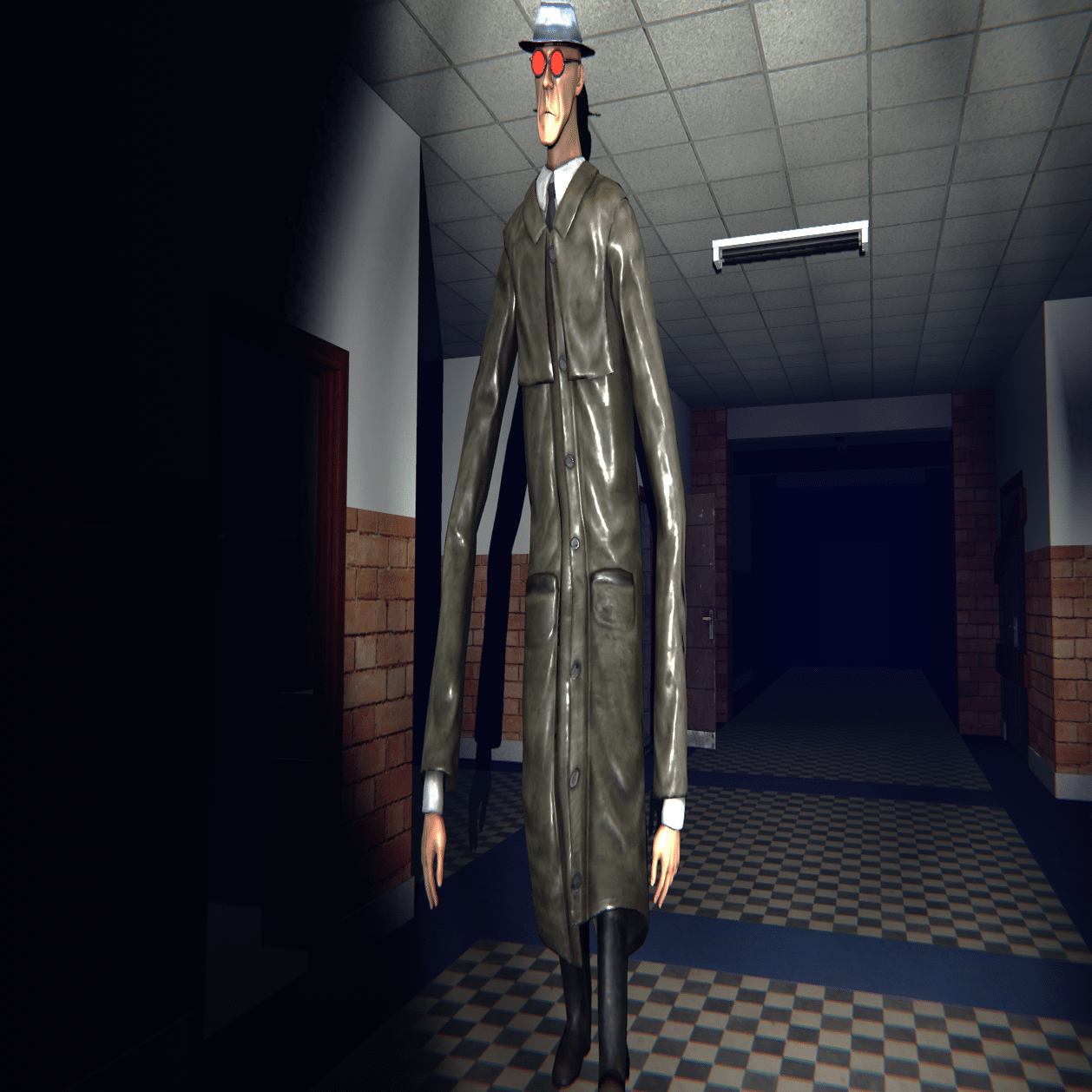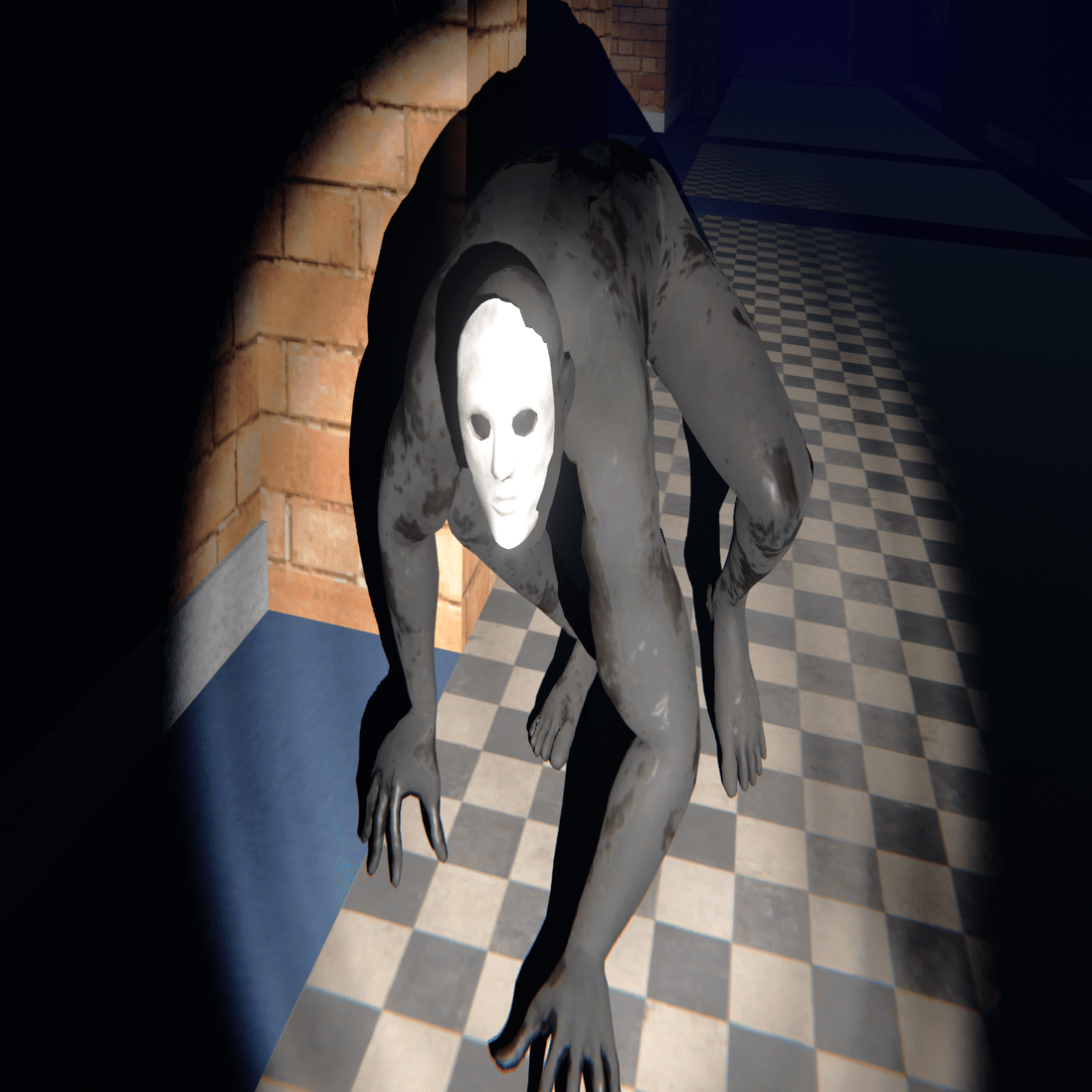 基本的な移動速度はプレイヤーよりも遅く、追いかけてくる前に壁や扉の死角から数秒間覗いてから追いかけてくる