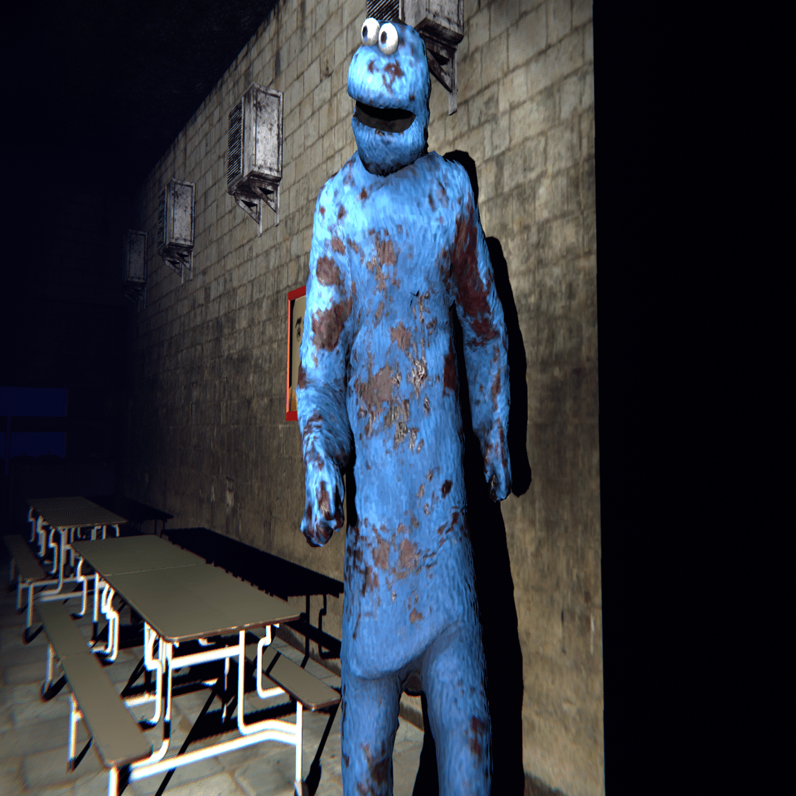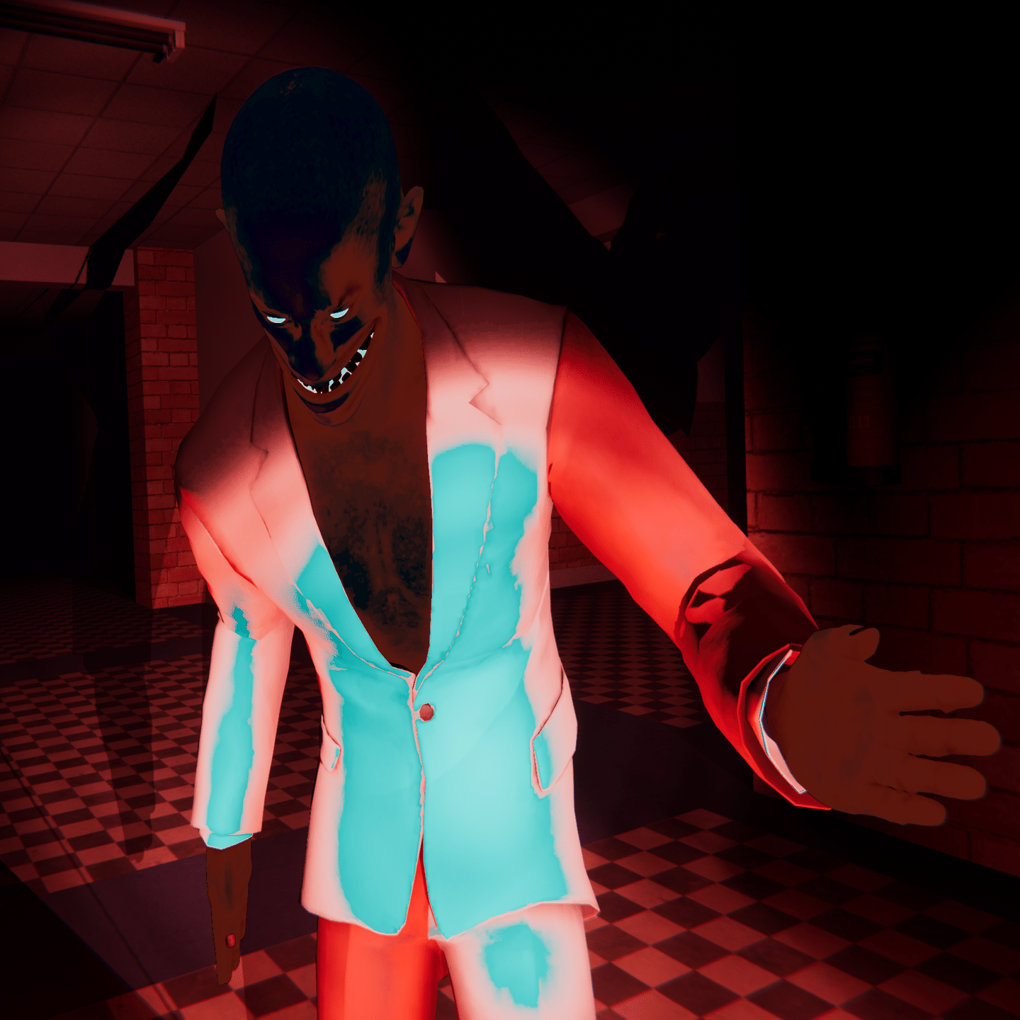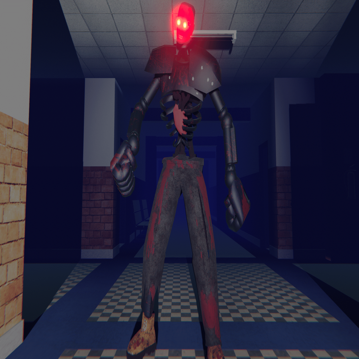 基本的な移動速度はプレイヤーよりも遅く、追いかけてくる前に壁や扉の死角から数秒間覗いてから追いかけてくる