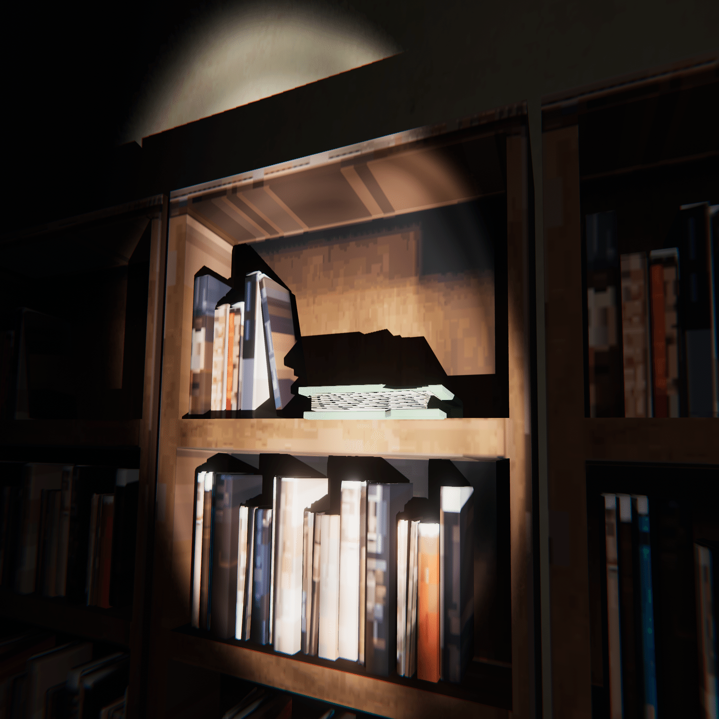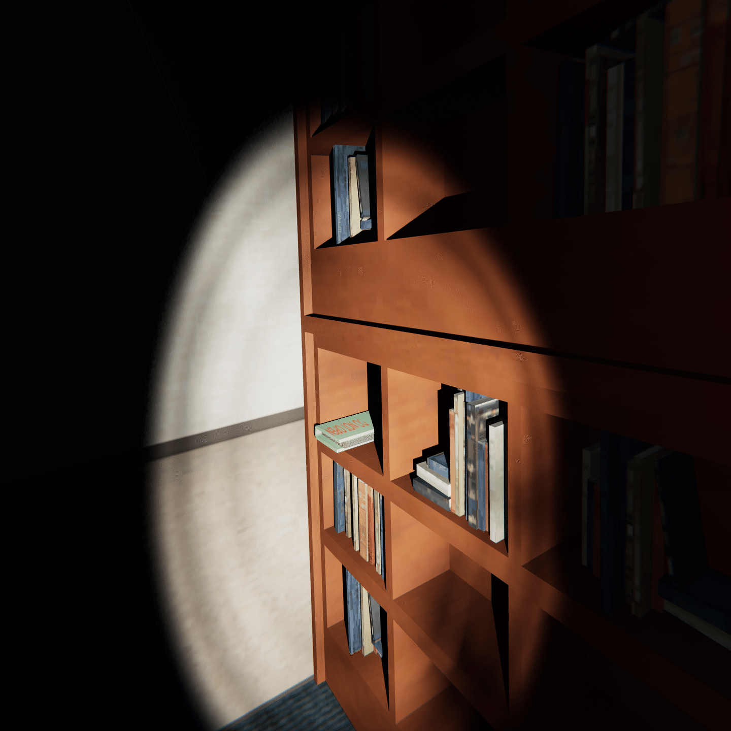 本棚、扉、ベンチ、街頭といった物の後ろや脇