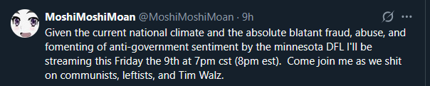 Here is an update to this story:Chaos and protest are currently erupting in Minneapolis after a heckin’ wholesome chungus ICE watcher tried to run over ICE agents with her car, and was shot in the head and killed for it. The mayor told press that ICE need to “get the fuck out,” and everything else, including multiple videos pf the incident, show a self defense situation.