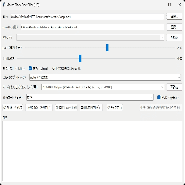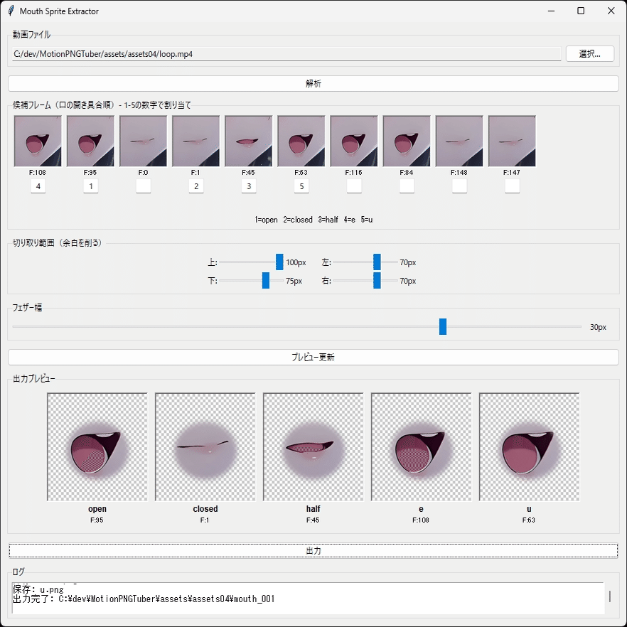 python mouth_sprite_extractor_gui.py起動すると操作パネルが表示されます。