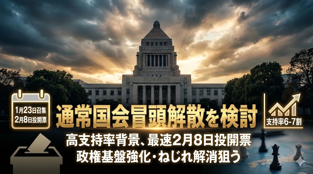 23日召集の通常国会冒頭で、高市早苗首相が衆院解散を検討していることが分かった。複数の政府・自民党関係者によると、首相が意向を周辺に伝えたという。党内基盤や連立関係に不安を抱える中、「強い経済」などを掲げて選挙で国民の審判を仰ぎ、政策実現の推進力を得るべきだと判断した模様だ。