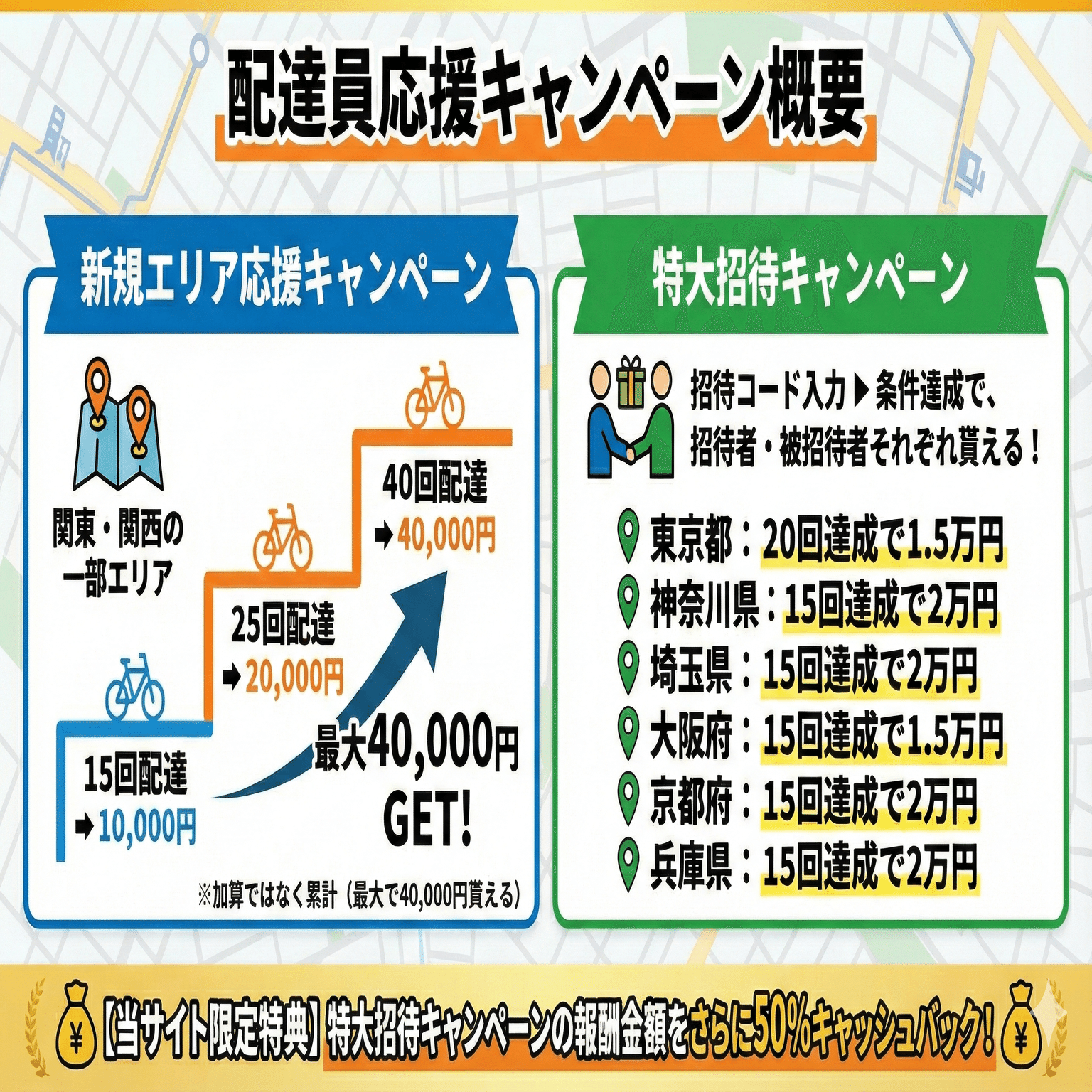1/6日〜1/19まで関東・関西の一部エリアで最大4万円貰える「新規エリア応援キャンペーン」開催!