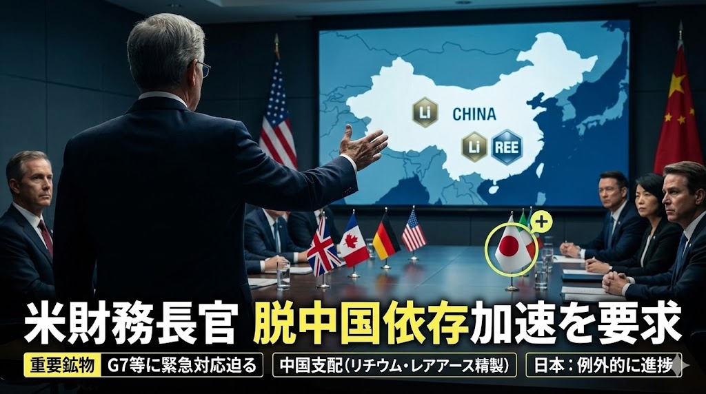 中国がリチウムやコバルトといった次世代産業のコメを握っている現状は、自由主義陣営にとって安全保障上の致命的なアキレス腱です。特に韓国などは「実用外交」と称して中国への未練を断ち切れないでいますが、トランプ政権のベセント長官が突きつけた「緊急性」という言葉の重みを理解すべきでしょう。中韓のような不安定なサプライチェーンに依存し続けることは、有事の際に国家の命運を相手に委ねることに等しいからです。