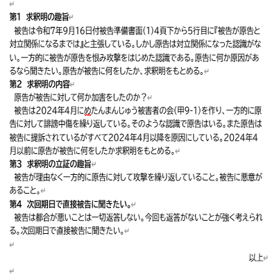 赤裏さんに求釈明を求めましたが回答はありませんでした