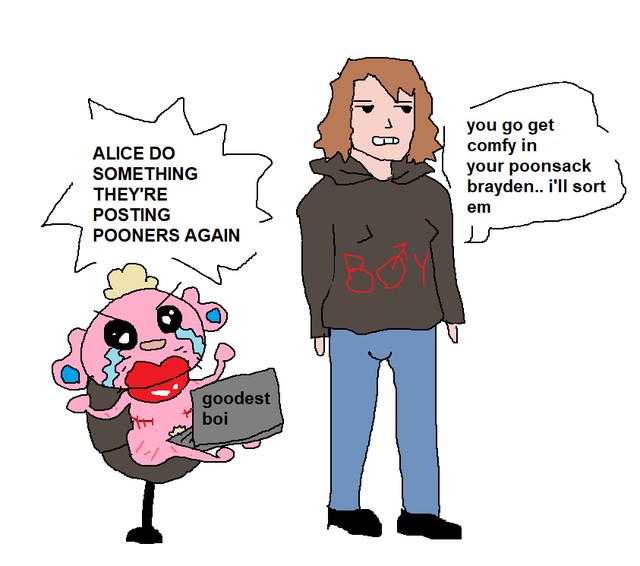 Pooners are often displayed alongside Alice, an MtF troon and recurring character who seems to serve as their caretaker