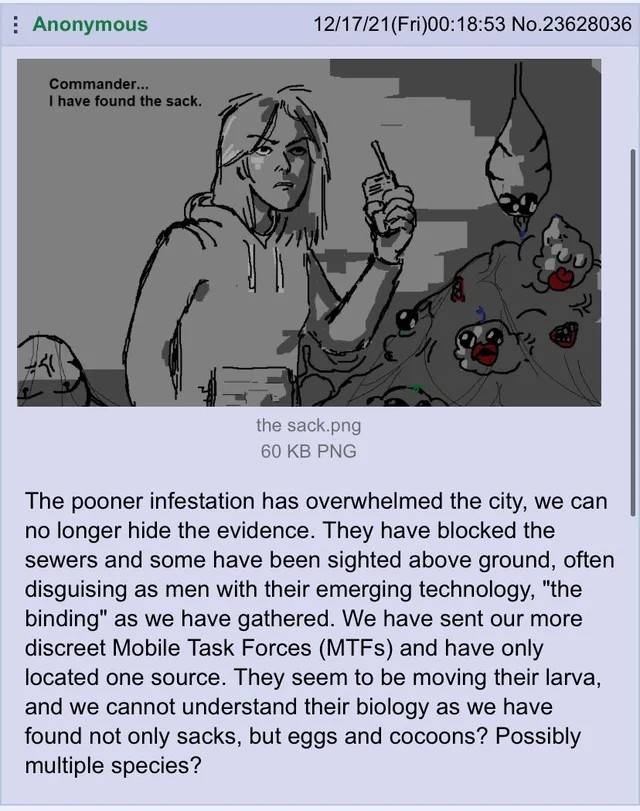 If this was indeed the first true Pooner, it would not be the last, u/babybabybaby222 had connected to a dark part of the TiF psyche, one that resonated with many it touched, likely because they saw their darkest fears reflected in it, in gazing into the Abyss, they found Pooners looking back at them, and a uniquely hilarious and disgusting meme was given shape.