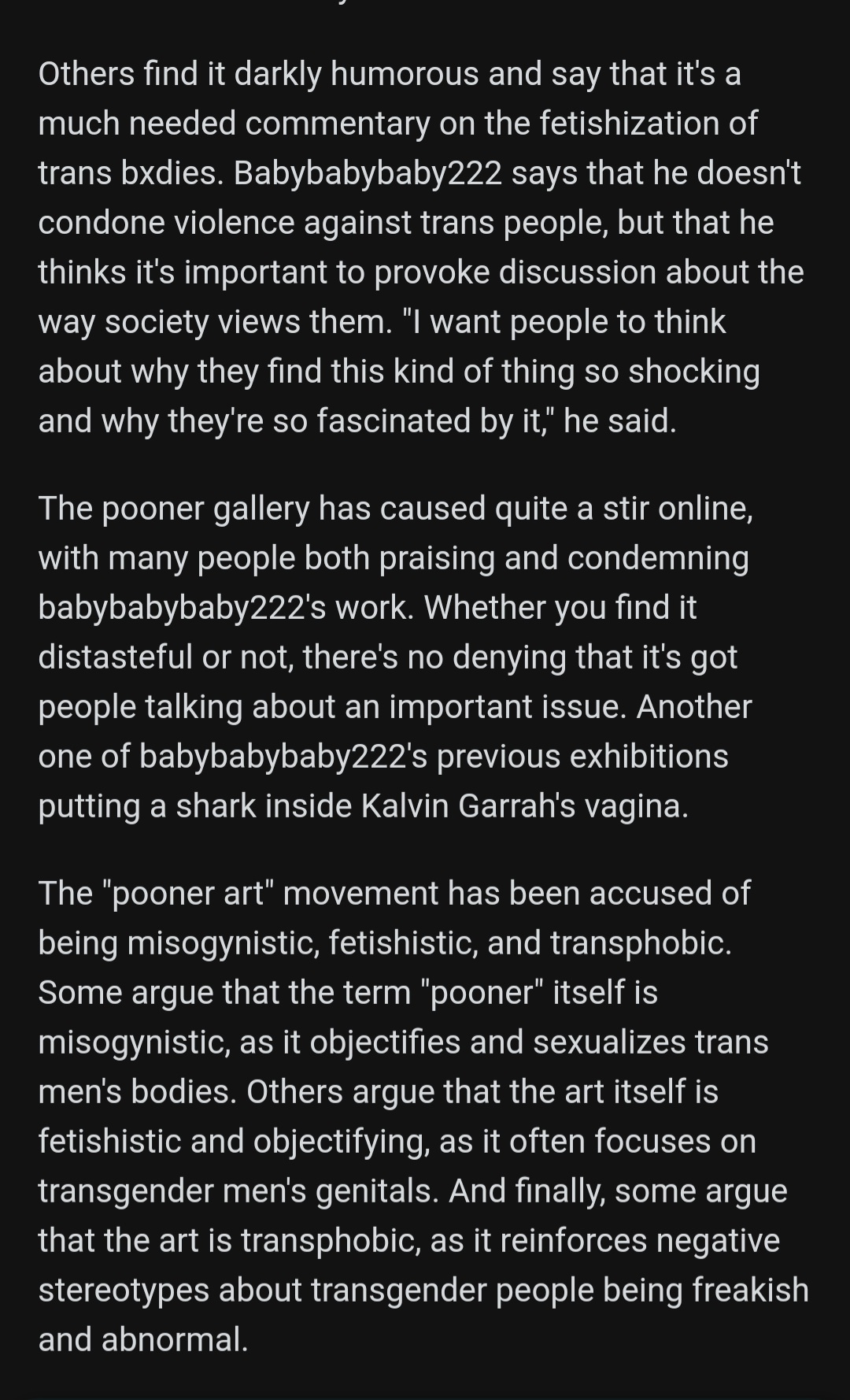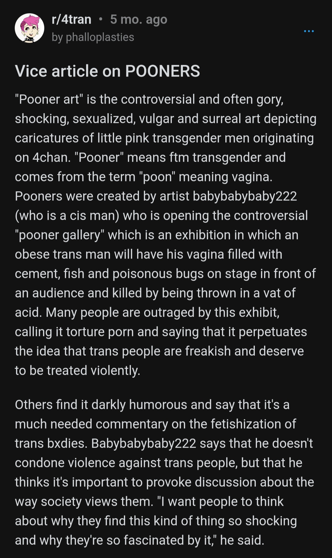 The existence of Pooners has recently come to my attention, and while some may consider this superfluous as there's already a Transphobic Memes thread (which is awesome btw and has some funny shit) the Pooners already on the site are scattered throughout multiple threads, making it difficult to find them.