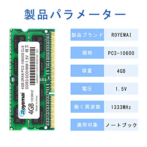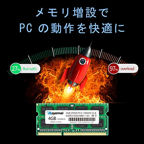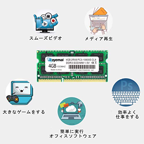 ノートPC用メモリ モジュール DDR3 1333 PC3 10600 4GBx1枚 1.5V 204pin CL9 Non-ECC SO-DIMM Mac 対応 永久保証