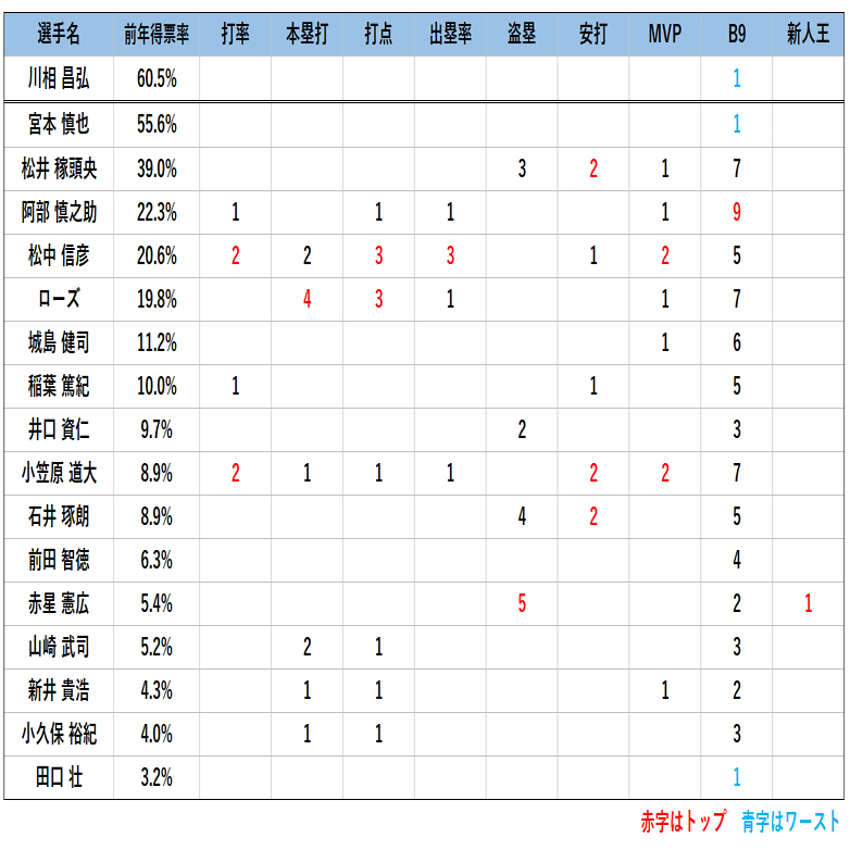 続いて、打撃タイトルや各種表彰について確認していきます。