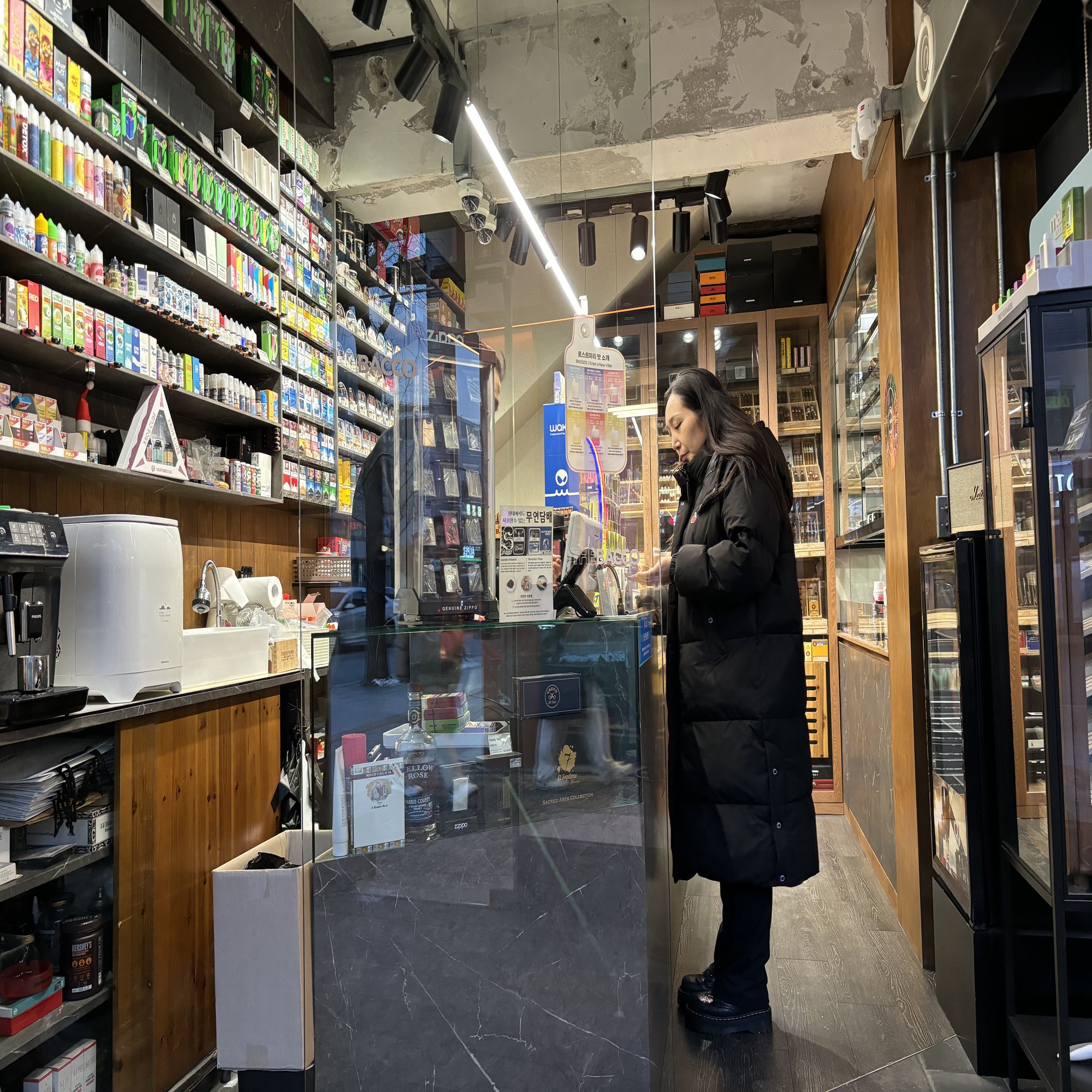 で、韓国は室内が完全禁煙。私のオアシスだったのが、この梨泰院にあるタバコやさん。たくさんのタバコ、コーヒー、ジュースなどが売っていて、なにかを買うと屋内でタバコが吸えるので、まじで入り浸っていました。また行きたいな。