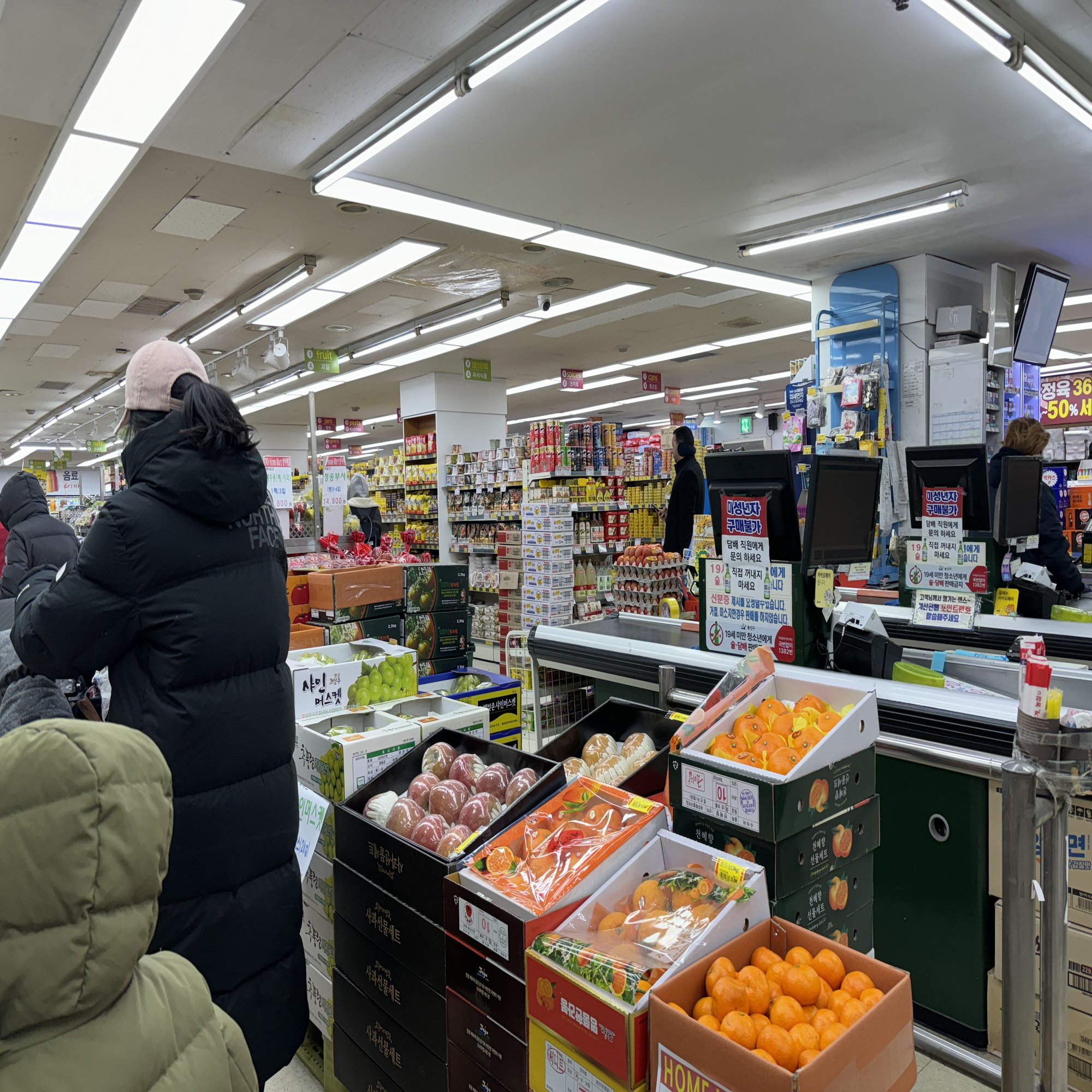 で、外食続きだし、「ジャンク、、」とディスられたので、自炊するか〜となり、そして韓国といえばスープ文化なので、有賀薫さんに捧げるために(?)、スープを作ることにしました。そしてやってきたのが、でかいローカルのスーパー。