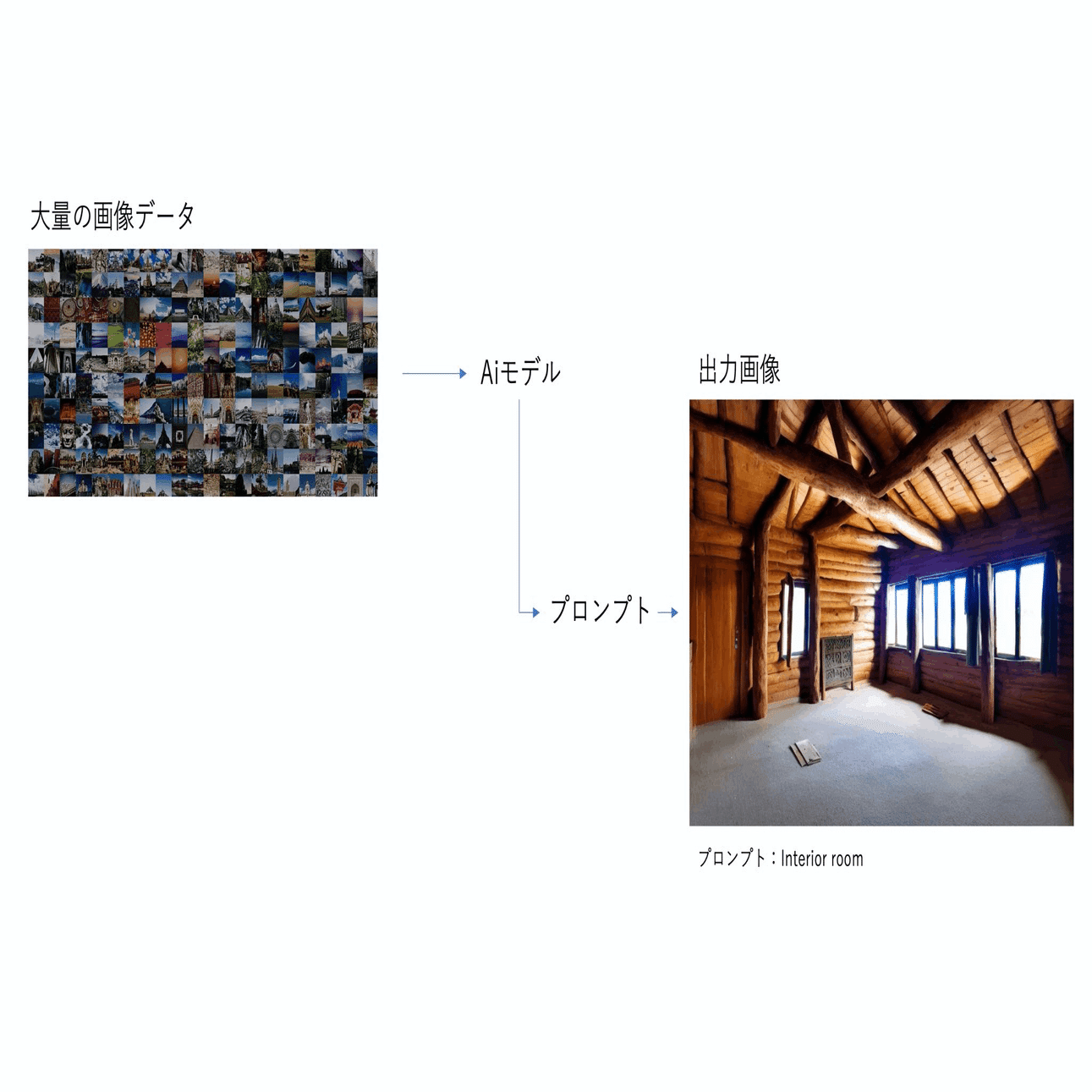もし奥行き感を認識させずに画像を生成した場合壁の向きやスケールがおかしな画像が生成されてしまう場合があります。