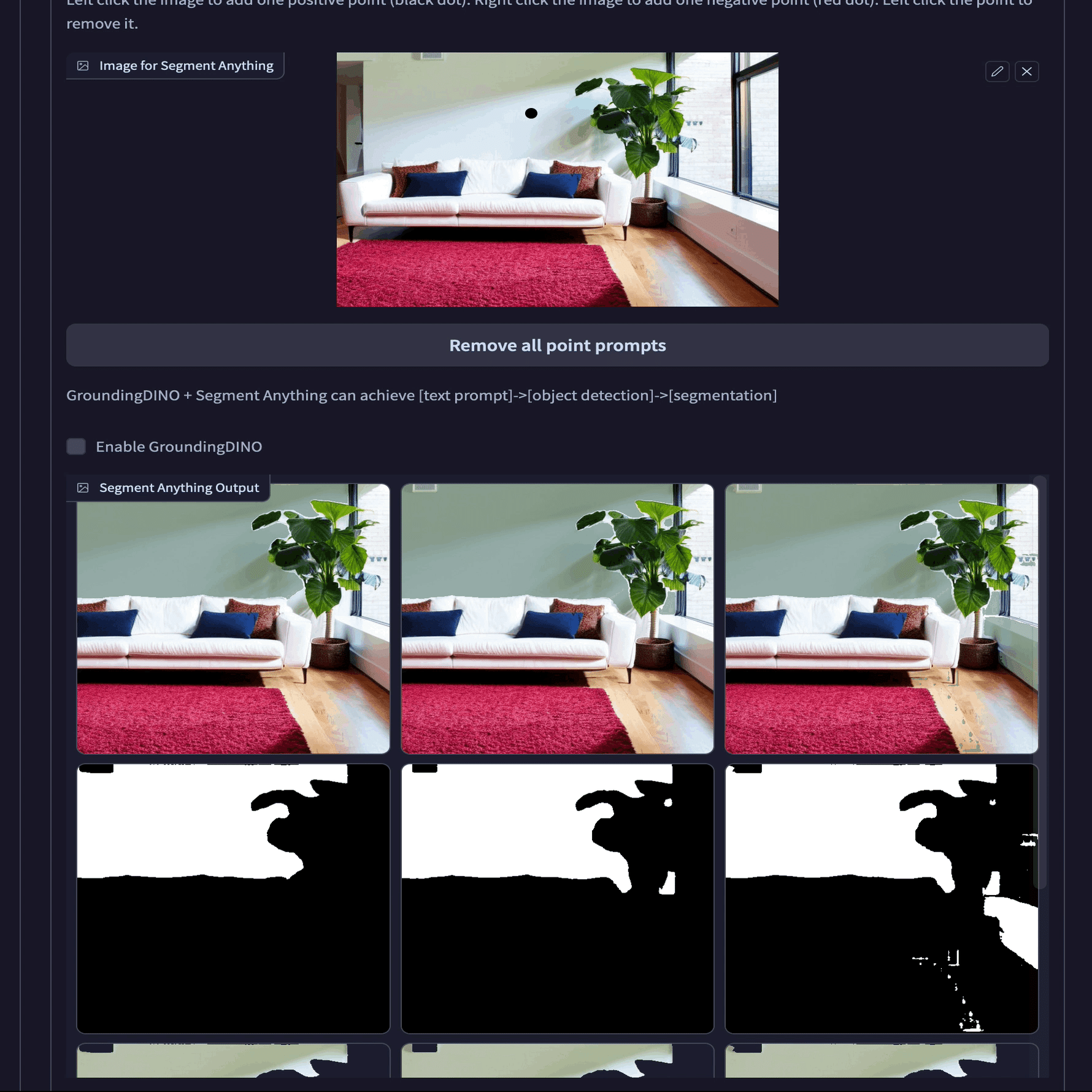 Segment Anythingはクリックで選択した部分とそれ以外を区別し自動でマスクを作成してくれます。