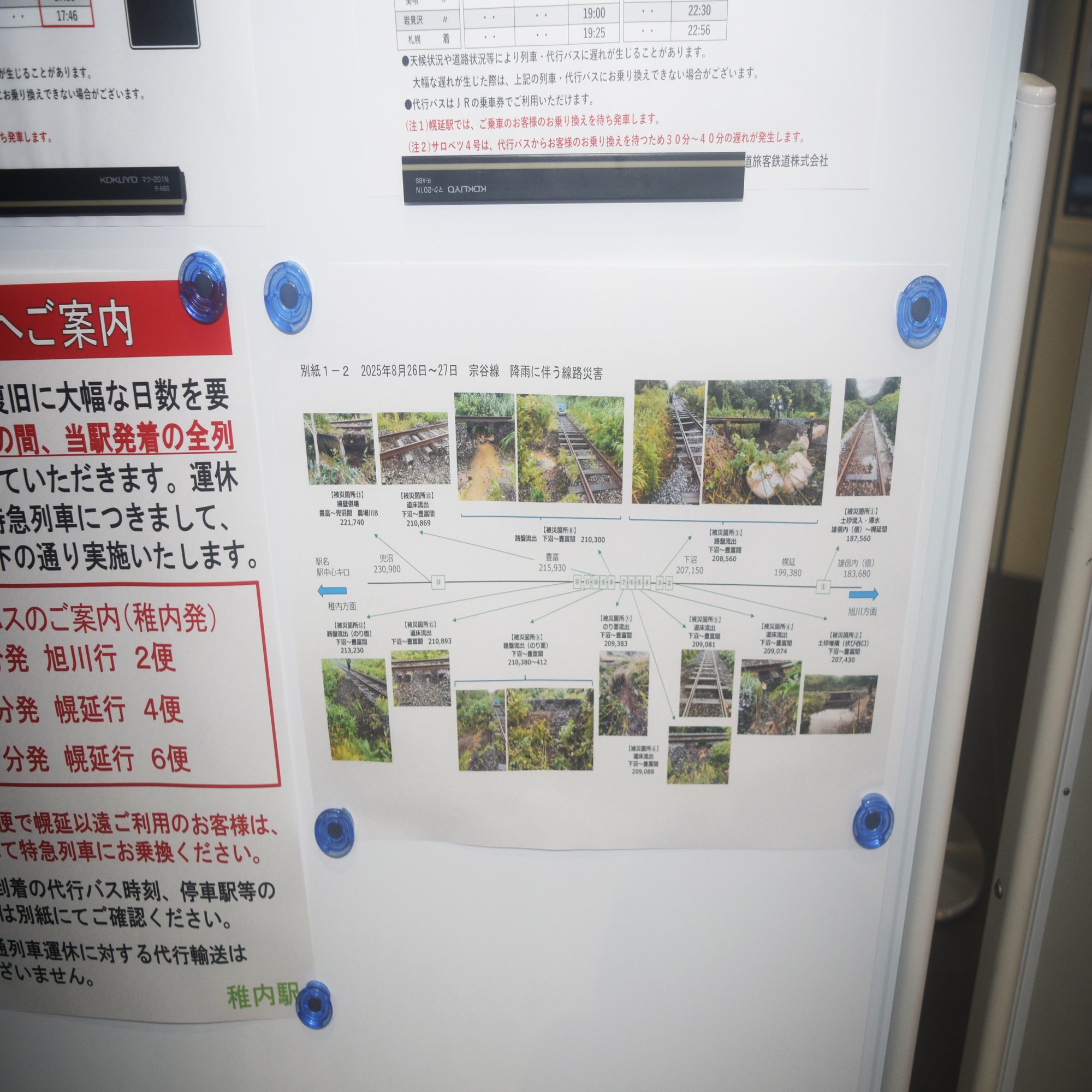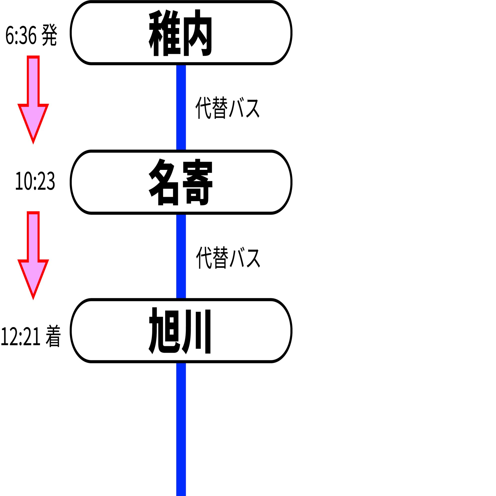 「やっぱ代替バスとかですよね。そうなると名寄に着くのは何時だろう。そのあとの乗り換えもきつくなりそう。そういうのわかりますか?」