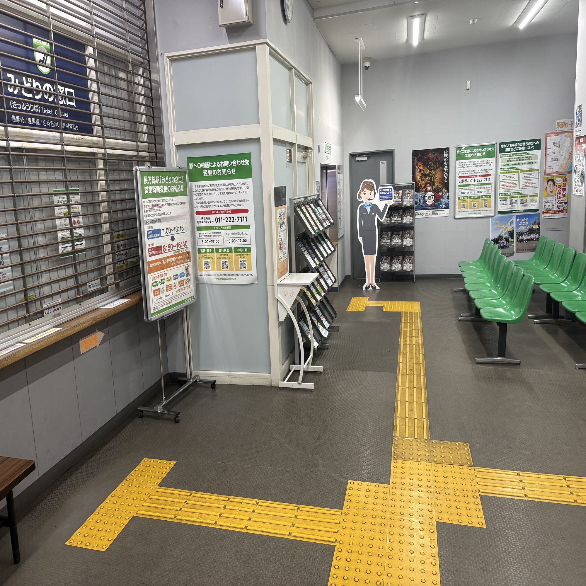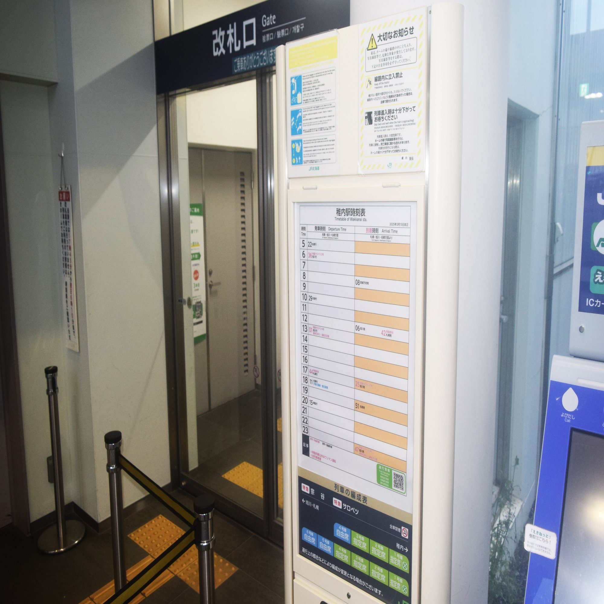 稚内駅は、この改札部分に有人改札とみどりの窓口を兼ねる場所があるのだけど、そこの前面に駅員さんが出てきて対応に当たっている様子だった。