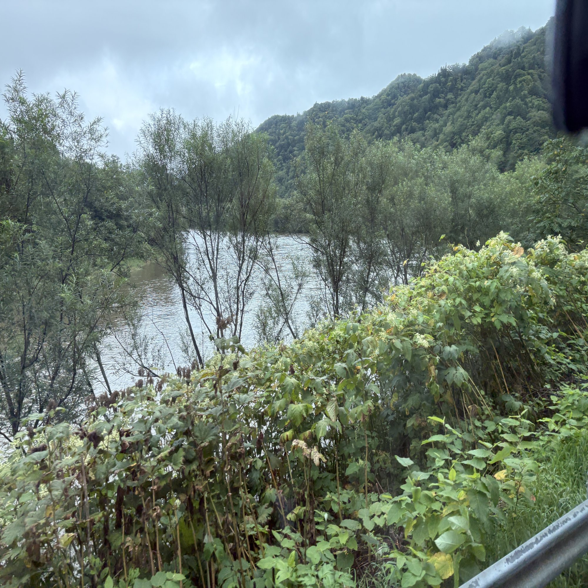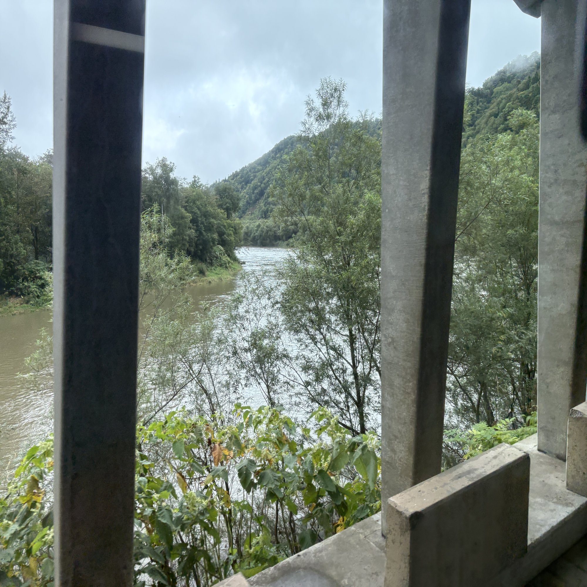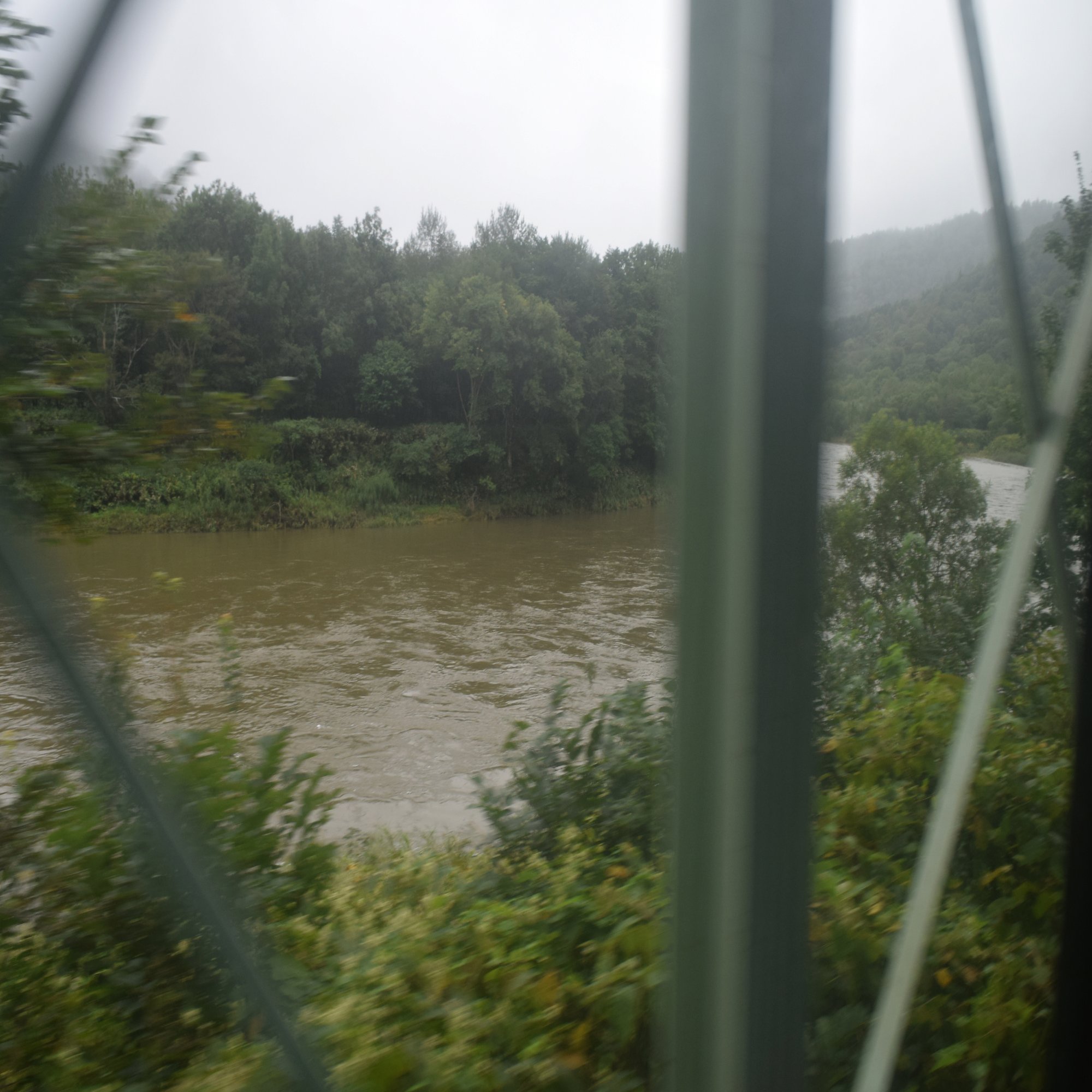 めちゃくちゃ増水している川が見えた。もはや濁流というレベルだ。